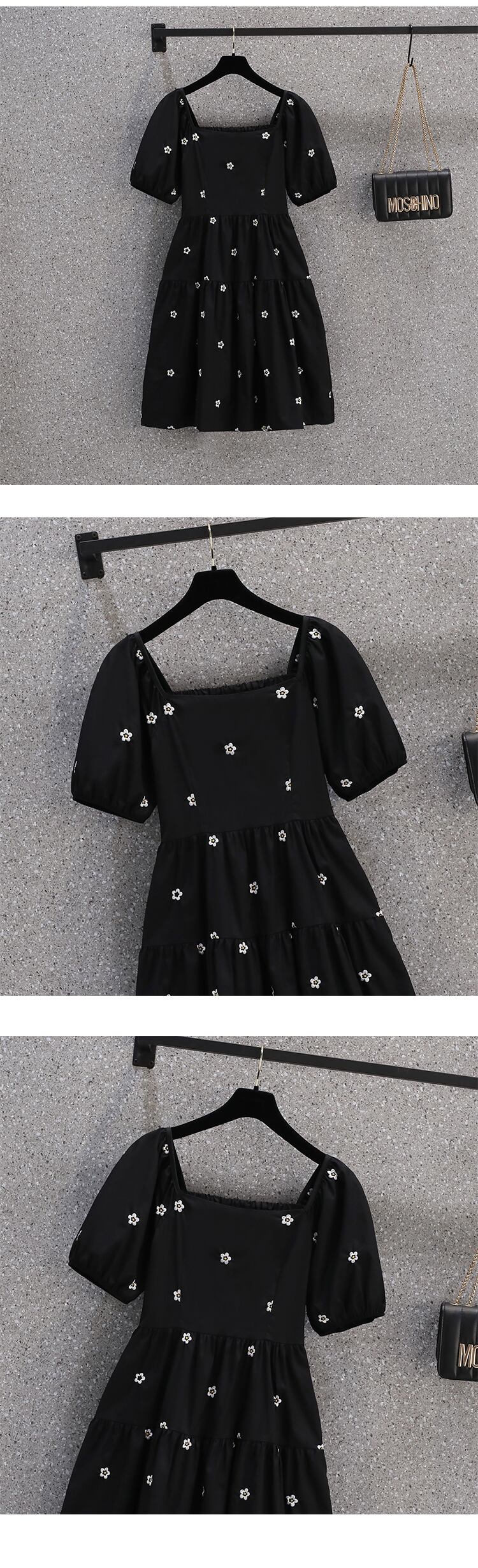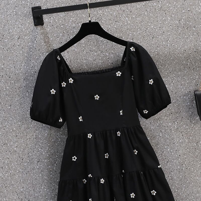 プラスサイズの婦人服 2022 ファットシスター秋の新バージョン減齢ウエスト痩身レトロ刺繍スクエアネックドレス レッド 大きめサイズ オータム 秋物 スクウェア 8884136043220729