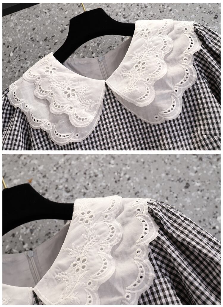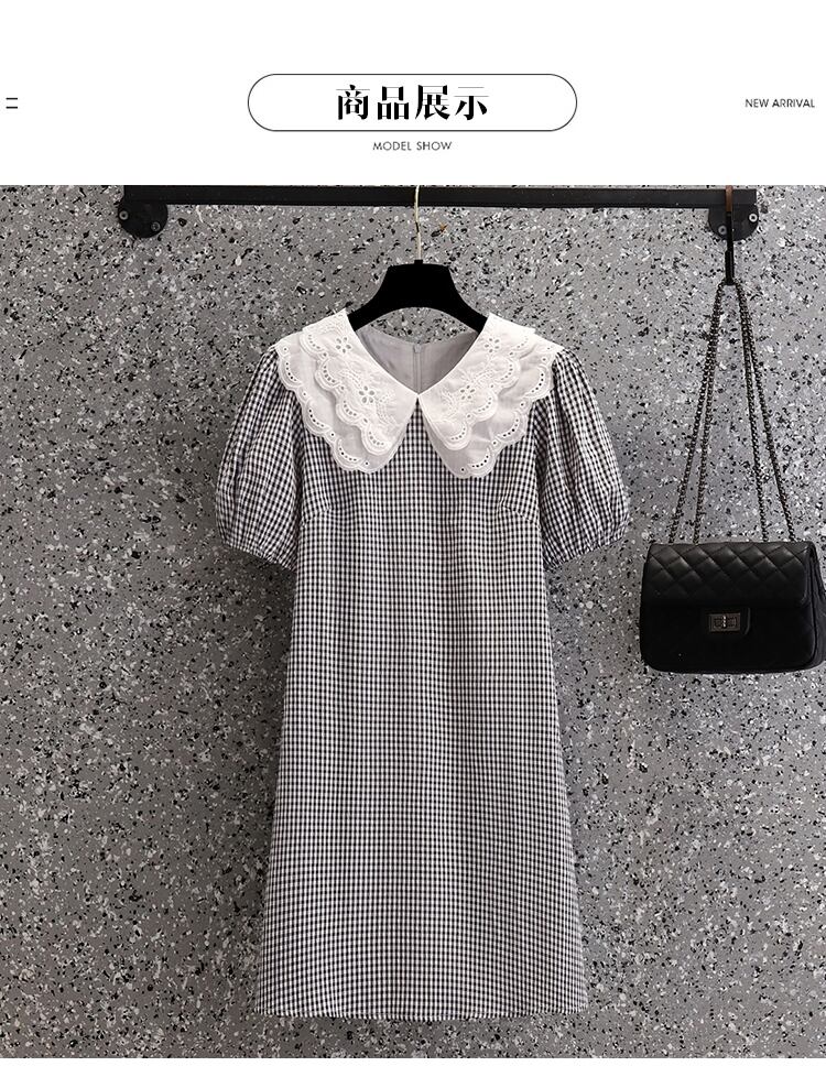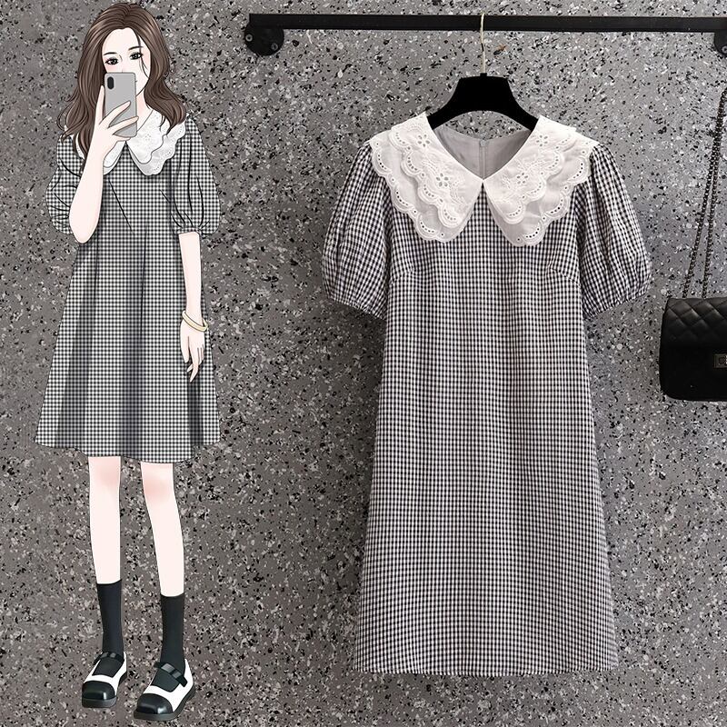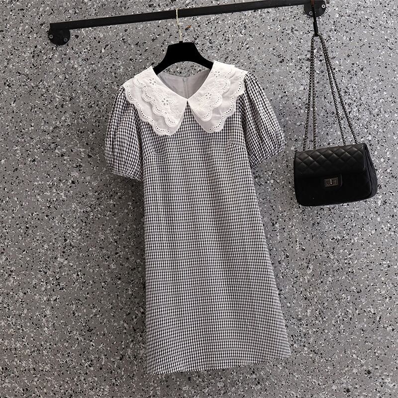 夏 2022 プラスサイズの女性のフランスのレースの人形の襟ルーズでスリムな新しいデザインオールマッチドレス 大きめサイズ サマー 夏物 8884161365268137