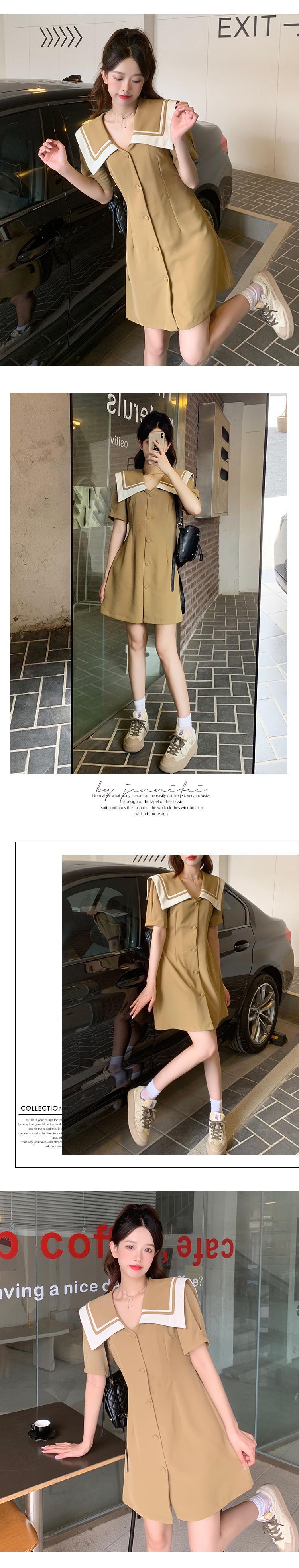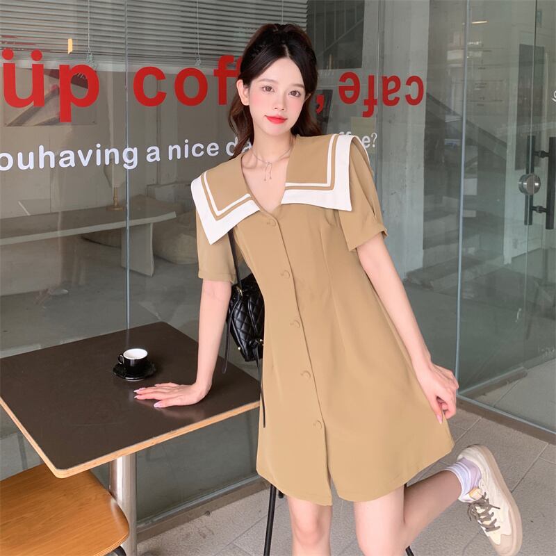 大きいサイズの婦人服 2022 ファット シスター夏の新しい eign 気質だった薄手のヘップバーン パフ スリーブ ネイビー カラー ドレス 大きめサイズ サマー 夏物 8884146892330016