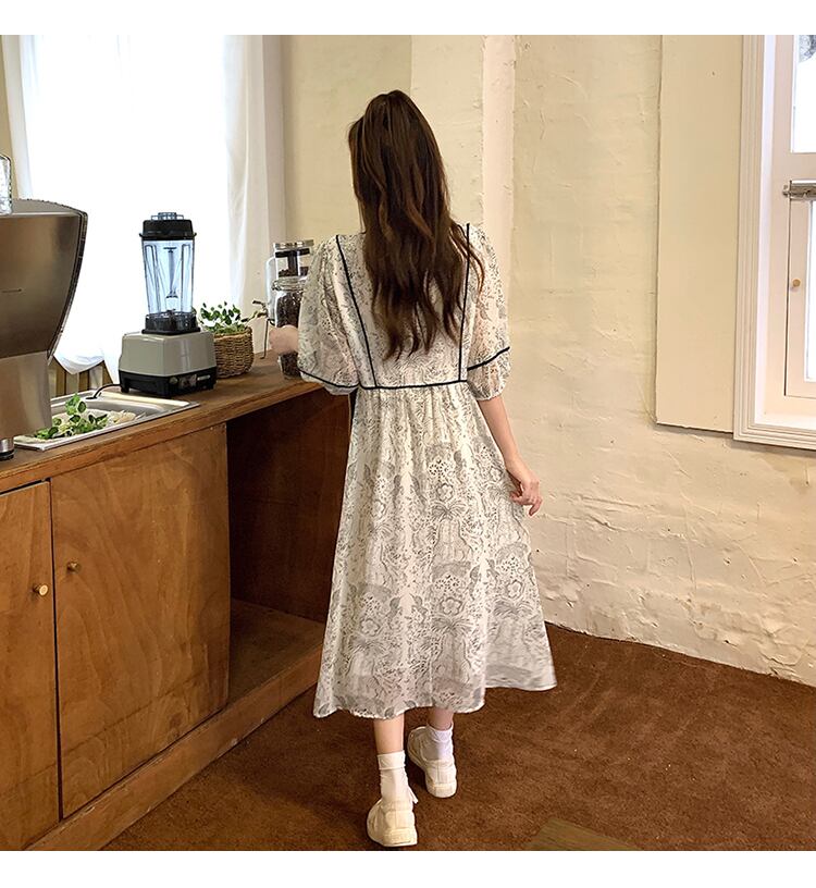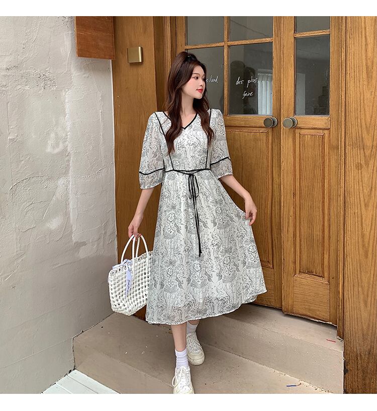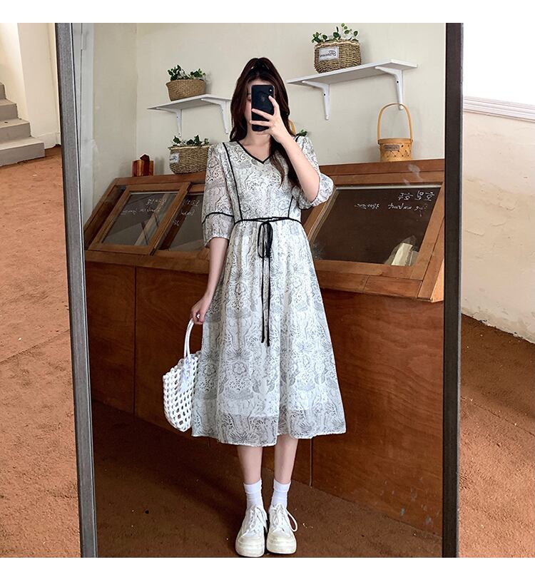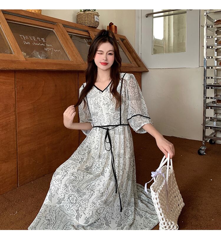 プラスサイズの婦人服 2022 ファットシスター夏の新しいオールマッチ痩身デザインウエストレトロスタイルのプリントドレス 大きめサイズ サマー 夏物 8884144133059209
