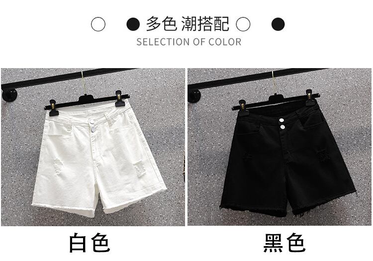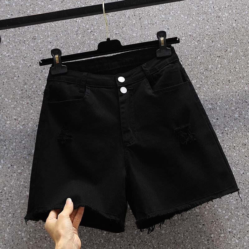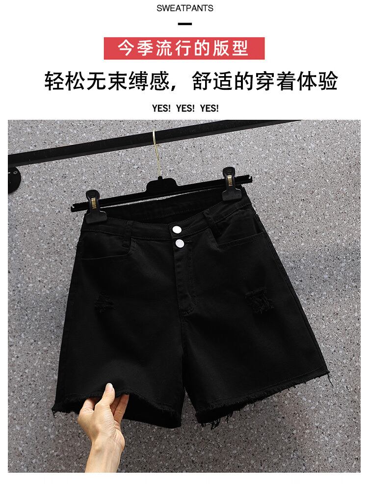 大きいサイズの婦人服 2022 夏の新しいファット シスター カジュアルなハイ ウエストと薄いデザイン センス破れた無地ジーンズ ハイウェスト 大きめサイズ サマー 夏物 ソリッドカラー 8884173857850771