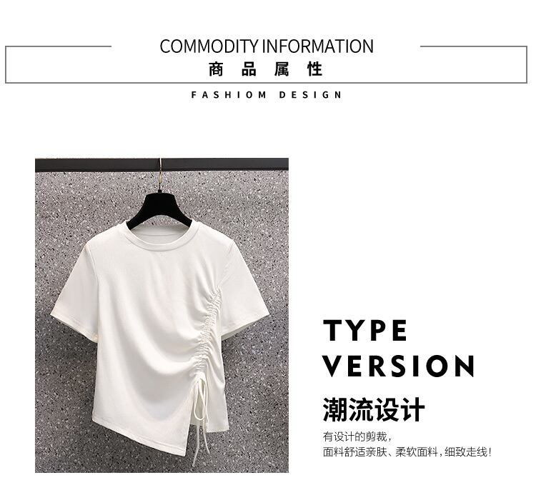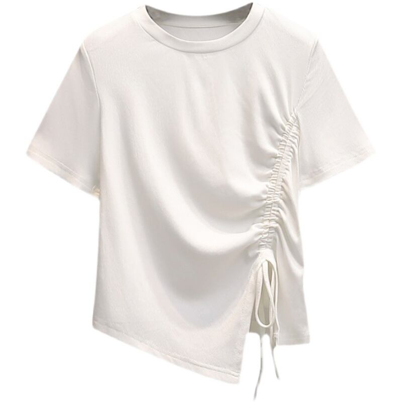 大きいサイズの婦人服 2022 ファットシスター夏の新しいファッションオールマッチ薄いストラップ不規則な半袖 tシャツトップ 大きめサイズ サマー 夏物 8884112008428960
