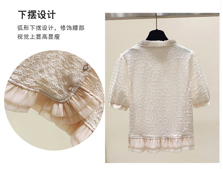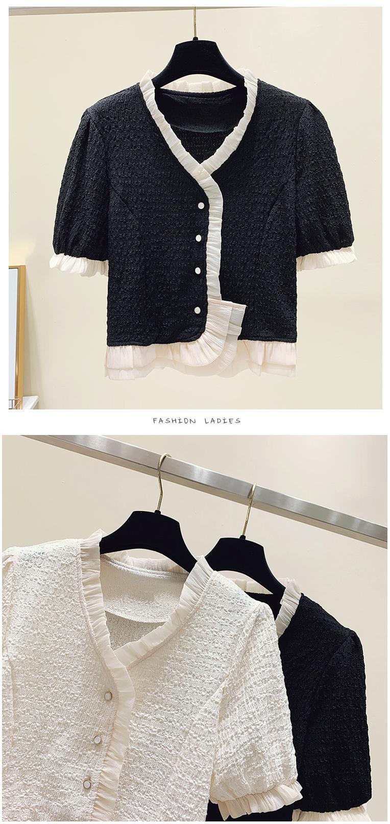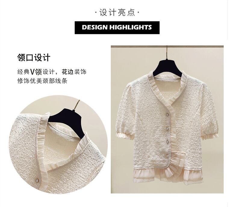 大きいサイズの婦人服 2022 夏の新しい脂肪姉妹バージョンフレンチ気質 V ネックカーディガンカバー腹ニッチシフォンシャツ 大きめサイズ サマー 夏物 Vネック 8884182788902606