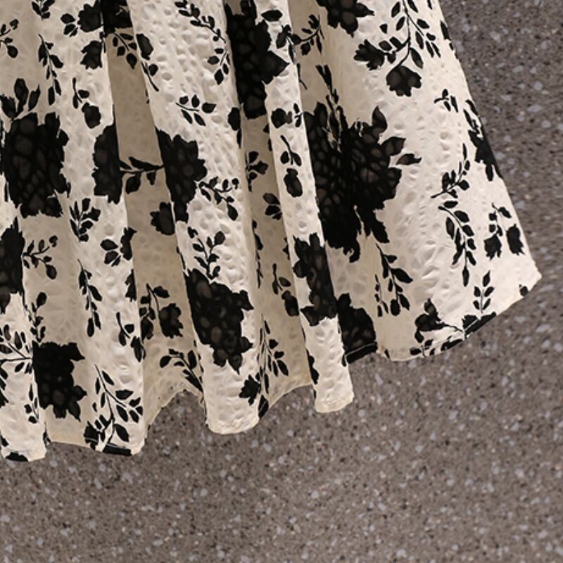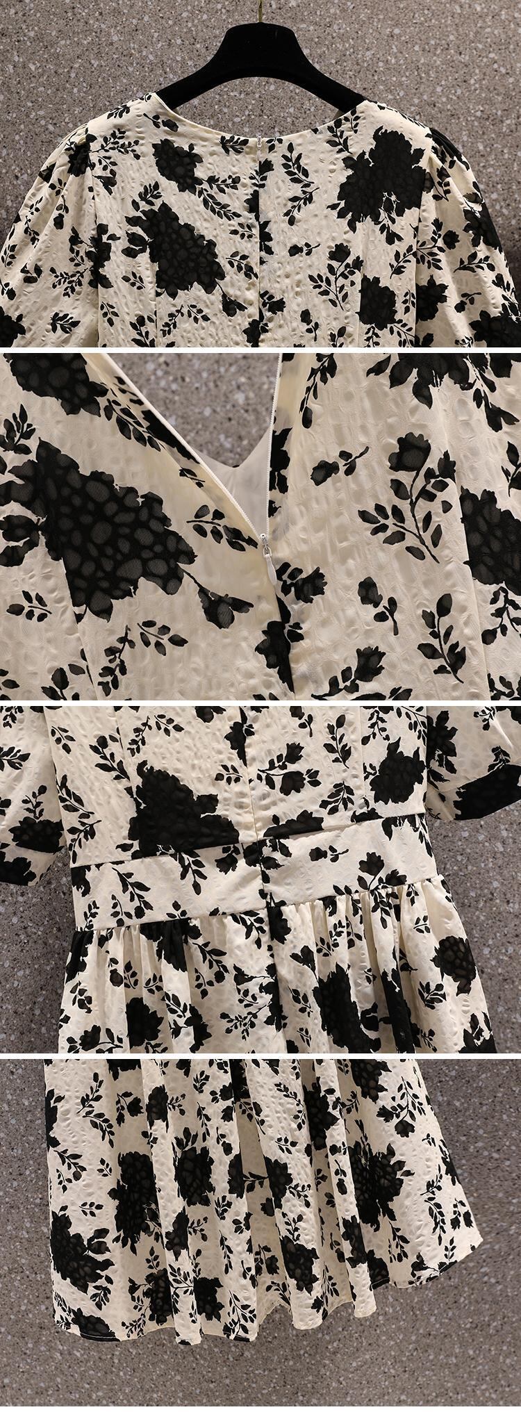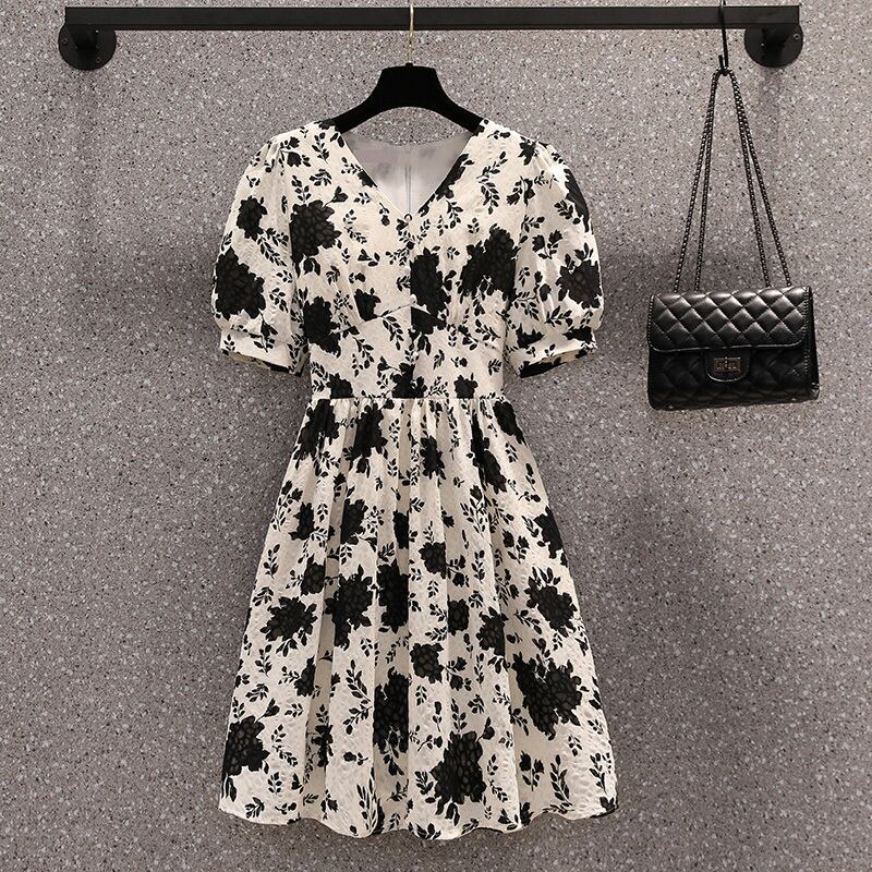 大きいサイズの婦人服 2022 夏の新しいファット シスター フレンチ V ネックのウエストと薄い気質の花柄のベリー カバー ドレス 大きめサイズ サマー 夏物 Vネック 888413051092188