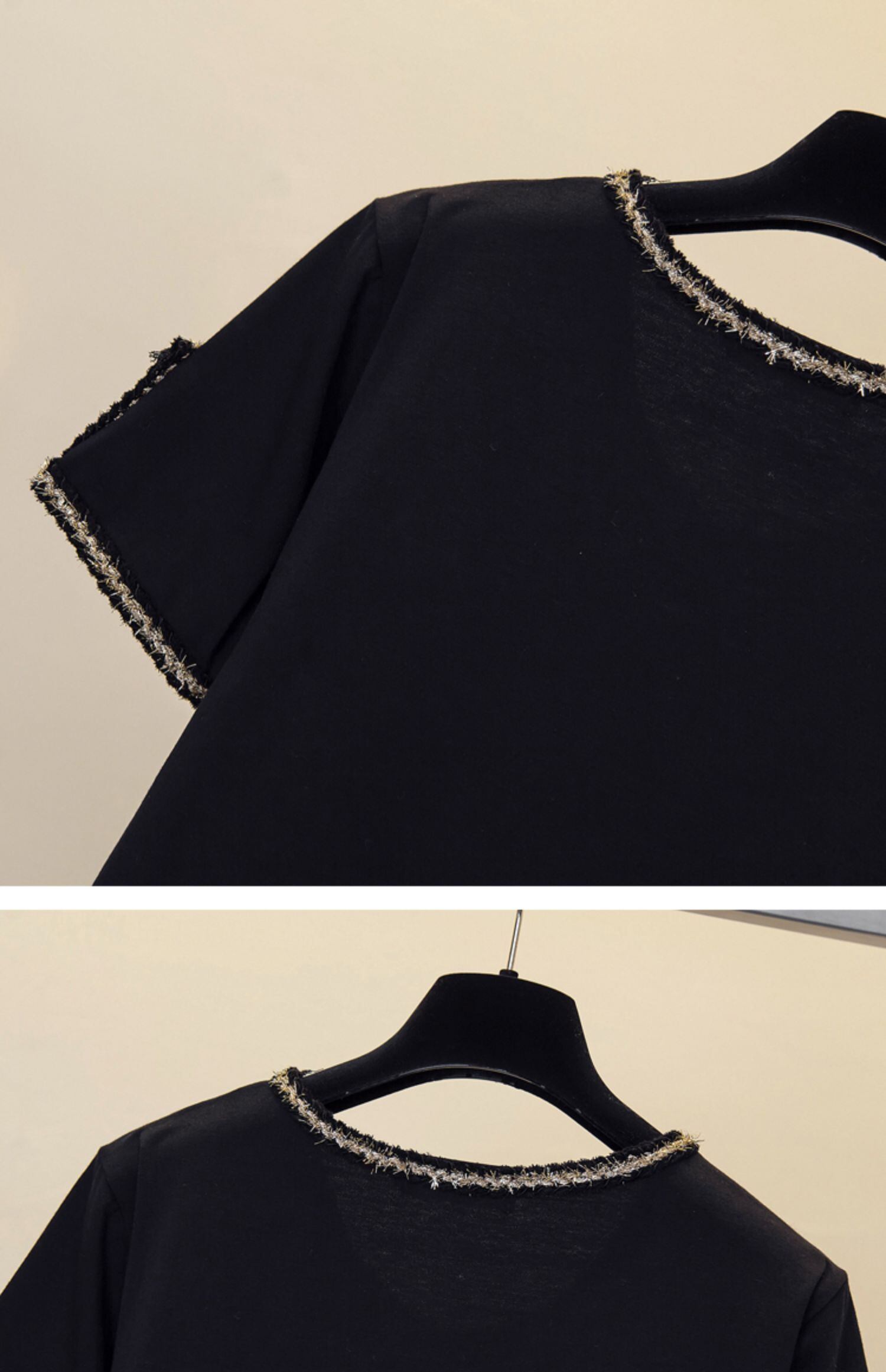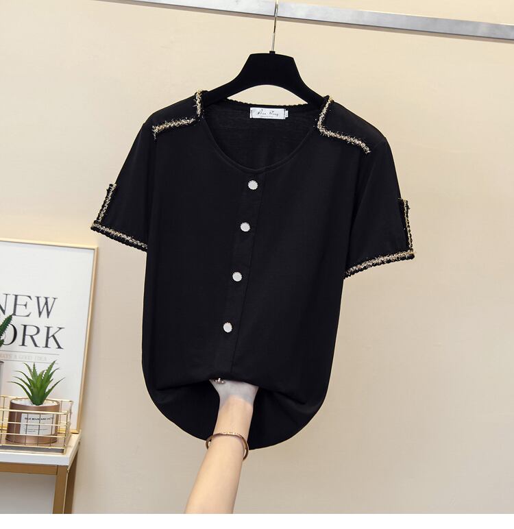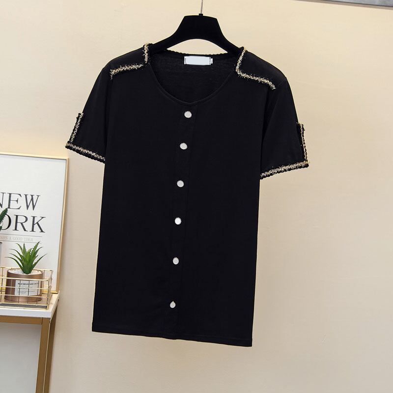 大きいサイズの婦人服 2022 夏の新しいファットシスター気質のカジュアルオールマッチルースと痩身無地 Tシャツの女性 大きめサイズ サマー 夏物 ソリッドカラー 8884134267033577