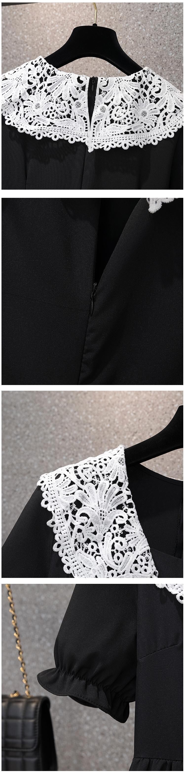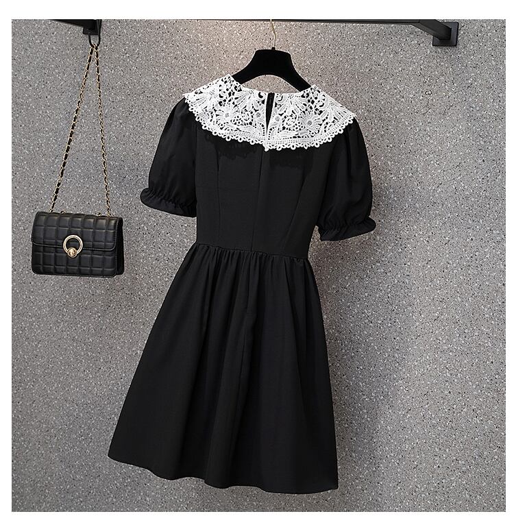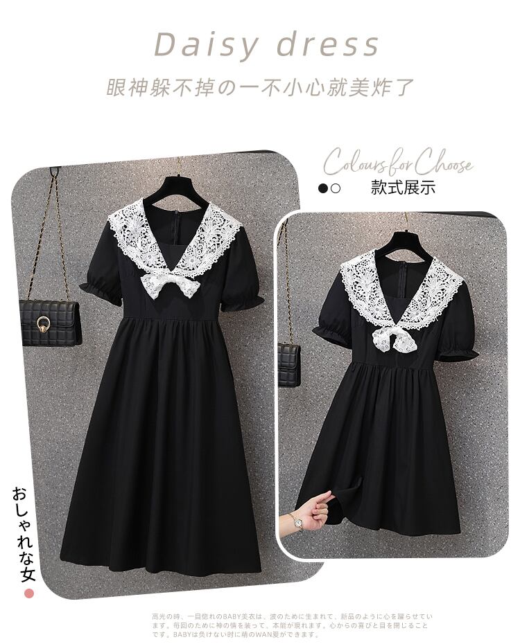 ヘップバーンスタイルの年齢を減らすドレス新 2022 夏レース V ネックステッチ黒と白の痩身プラスサイズの女性のスカート ホワイト ブラック 大きめサイズ サマー 夏物 Vネック 8884167112962532