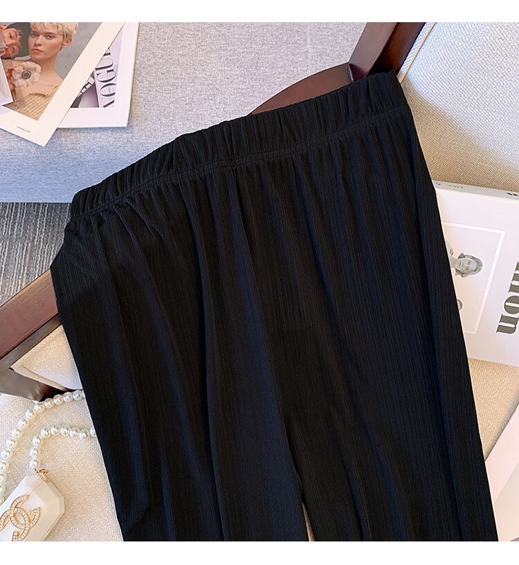 大きいサイズの婦人服 2022 トレンディな女性の夏の新しいファット シスター ファッション弾性ウエストをカバーする肉をカバーする薄いオールマッチ カジュアル ワイドレッグ パンツ エラスティック 伸縮 大きめサイズ サマー 夏物 8884165038196641