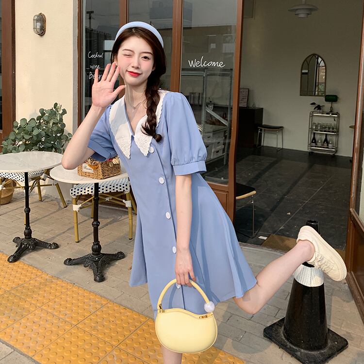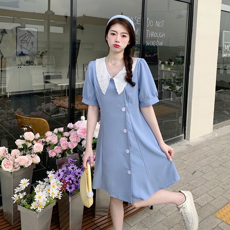 大きいサイズの婦人服 2022 太った姉妹の夏の新しいバージョンの薄い人形の襟西洋スタイルの年齢を減らす半袖のドレス 大きめサイズ サマー 夏物 8884160587578432
