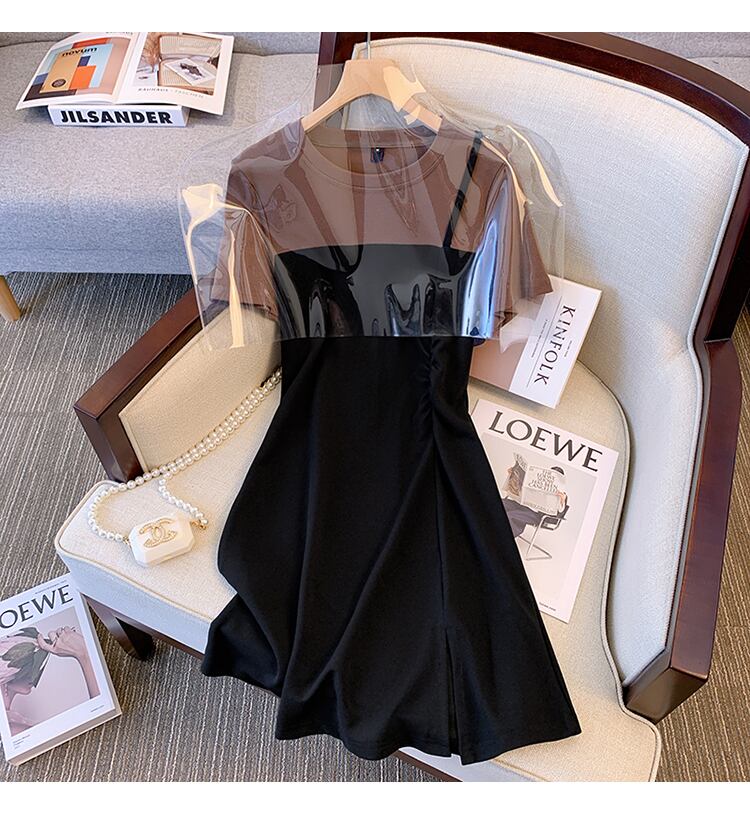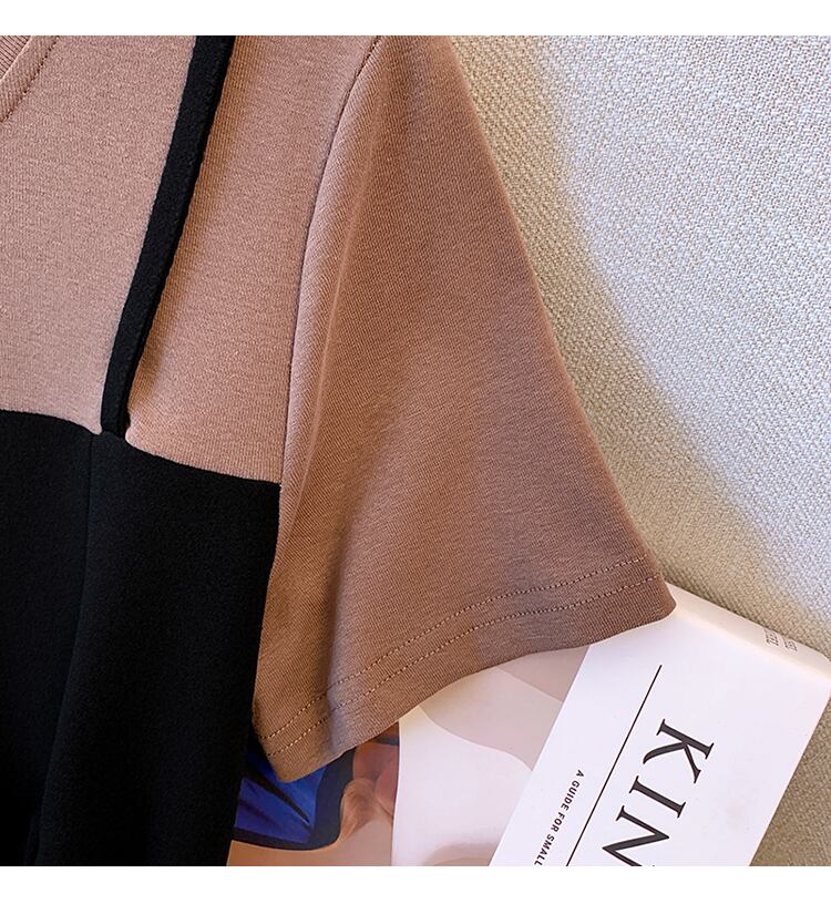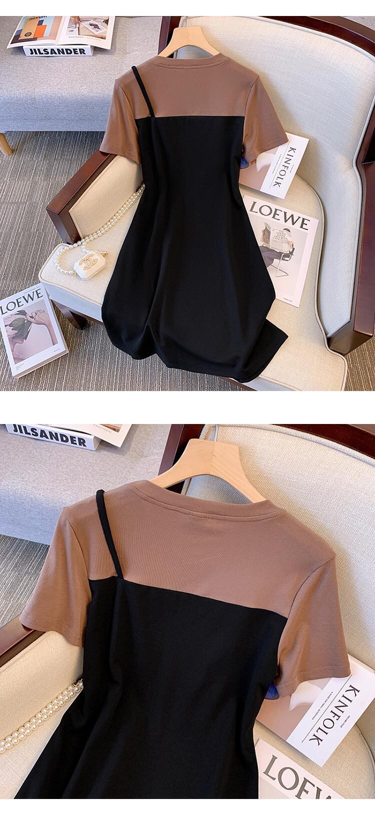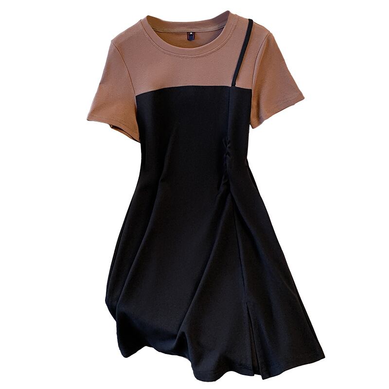 大きいサイズの婦人服2022夏の新しいファットシスターデザインセンスウエストコントラストカラーフレンチステッチフェイクツーピースドレス 大きめサイズ サマー 夏物 8884172494241521