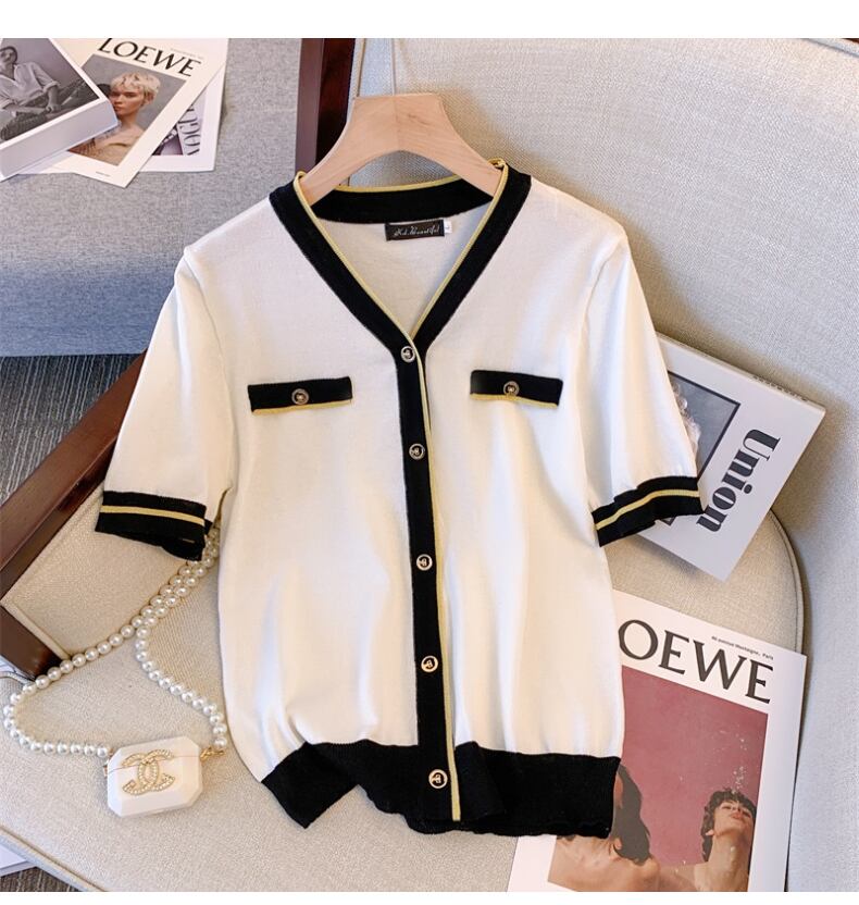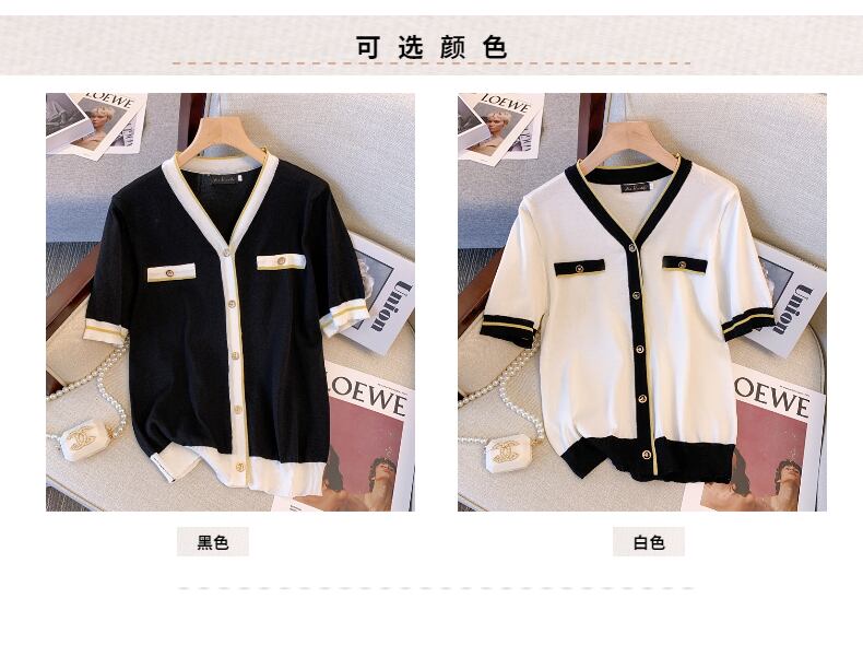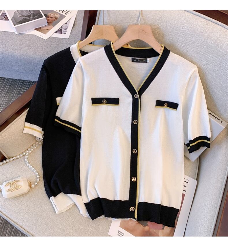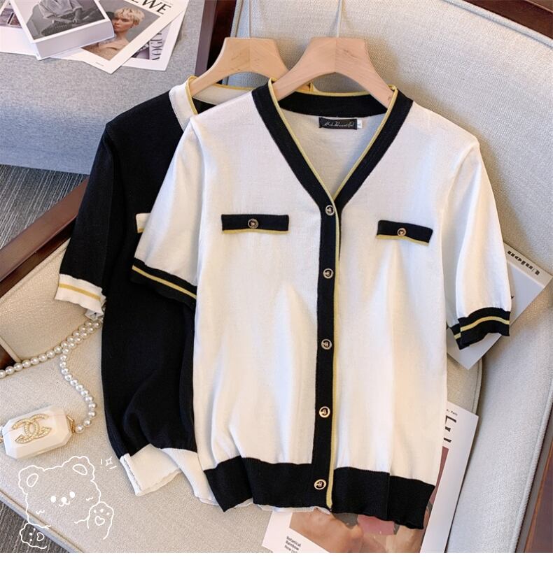 大きいサイズの婦人服 2022 ファット シスター夏の新しいファッション V ネック 年齢を減らすオール マッチ ニット アイス シルク半袖トップ女性 大きめサイズ サマー 夏物 Vネック 8884141300537628