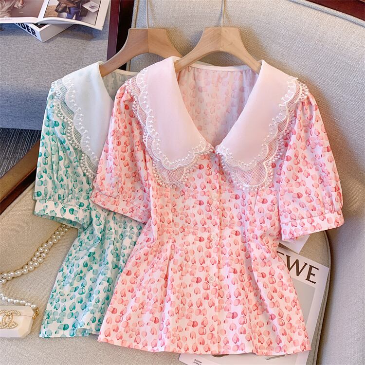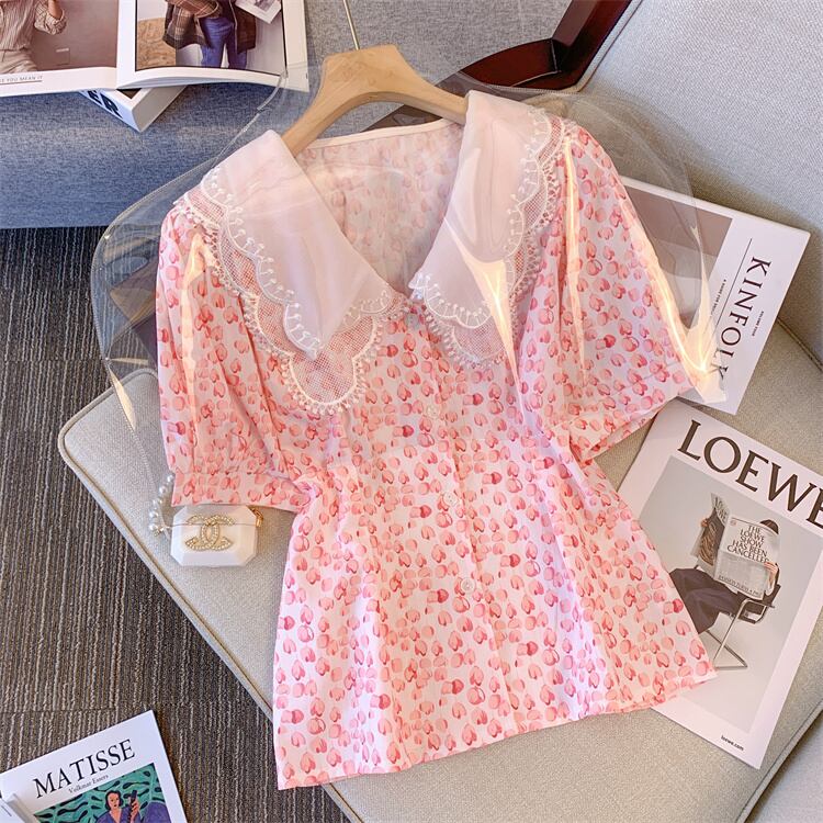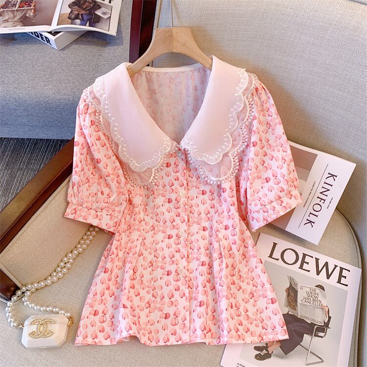 大きいサイズの婦人服 2022 夏新ファットシスターフレンチ気質年齢引き下げ花柄センス腹カバーシフォンシャツ女性 大きめサイズ サマー 夏物 8884133401072199