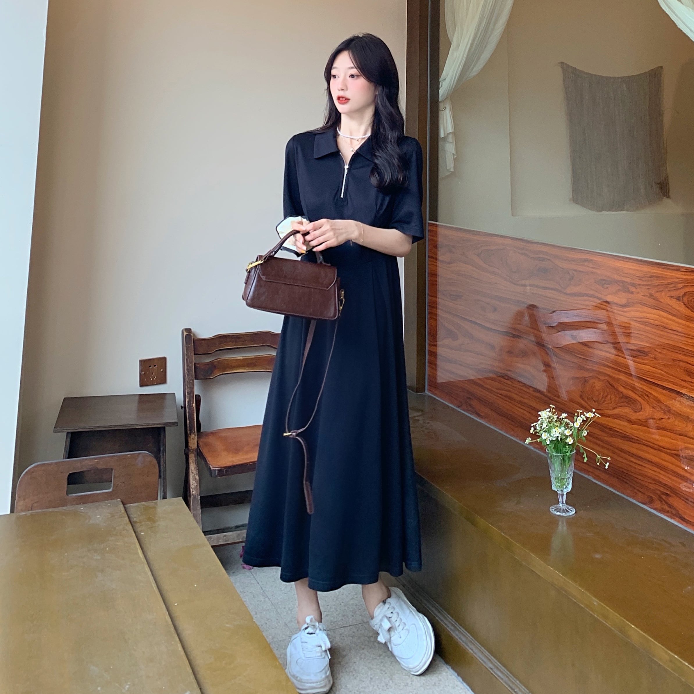 大きいサイズの婦人服 2022 太った姉妹の夏の新しいカジュアルなウエストとスリムな長いポロ襟の年齢を減らすドレス ロング 大きめサイズ サマー 夏物 888411506777018