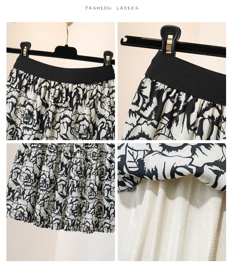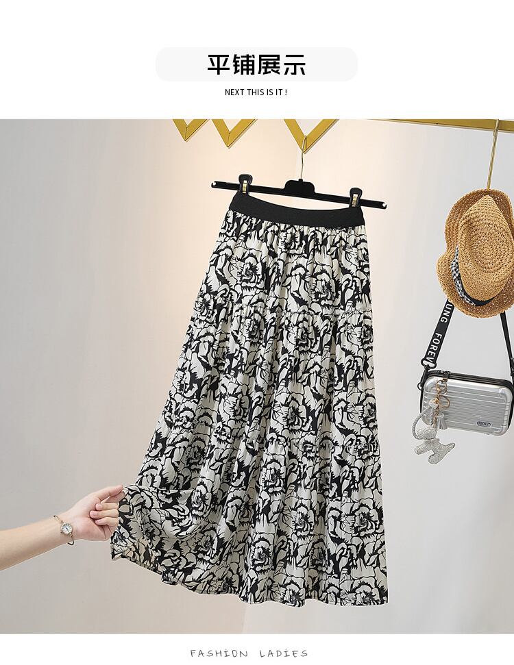 大きいサイズの婦人服 2022 ファットシスター夏の新しいミッドレングスの弾性ウエスト大スイングスカートブロークンフラワー薄いスカート エラスティック 伸縮 大きめサイズ サマー 夏物 フラワーデザイン 8884120427268523
