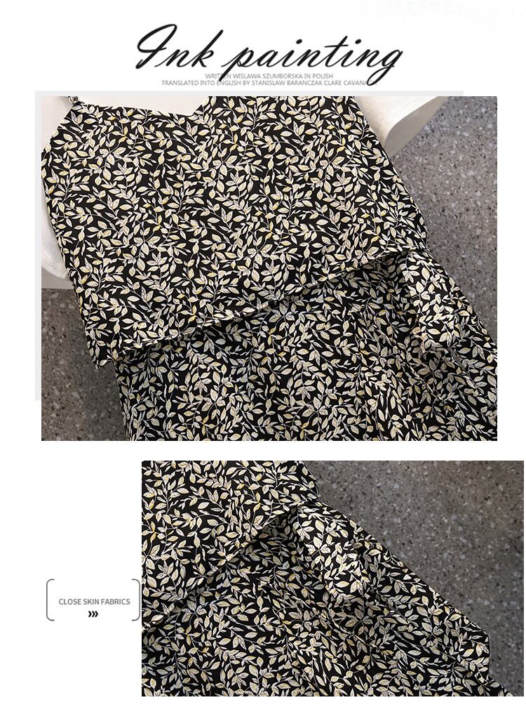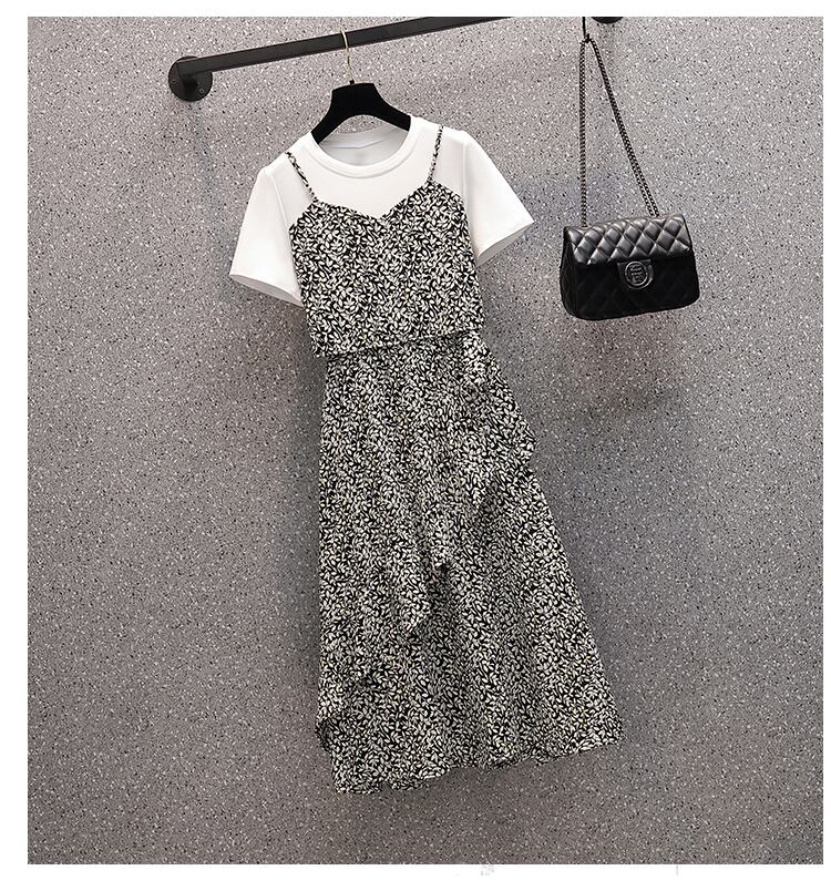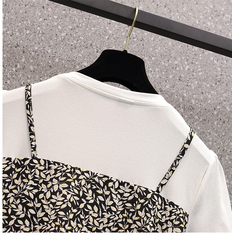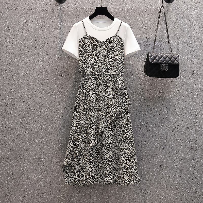 大サイズの婦人服 2022 ファットシスター夏の新気質ウエストタイショー薄いフェイクツーピース花柄ドレス 大きめサイズ サマー 夏物 8884172471566435
