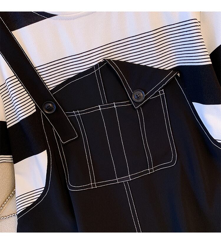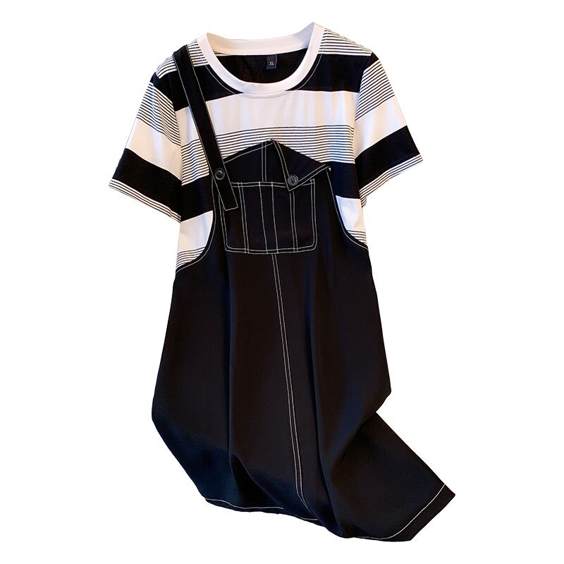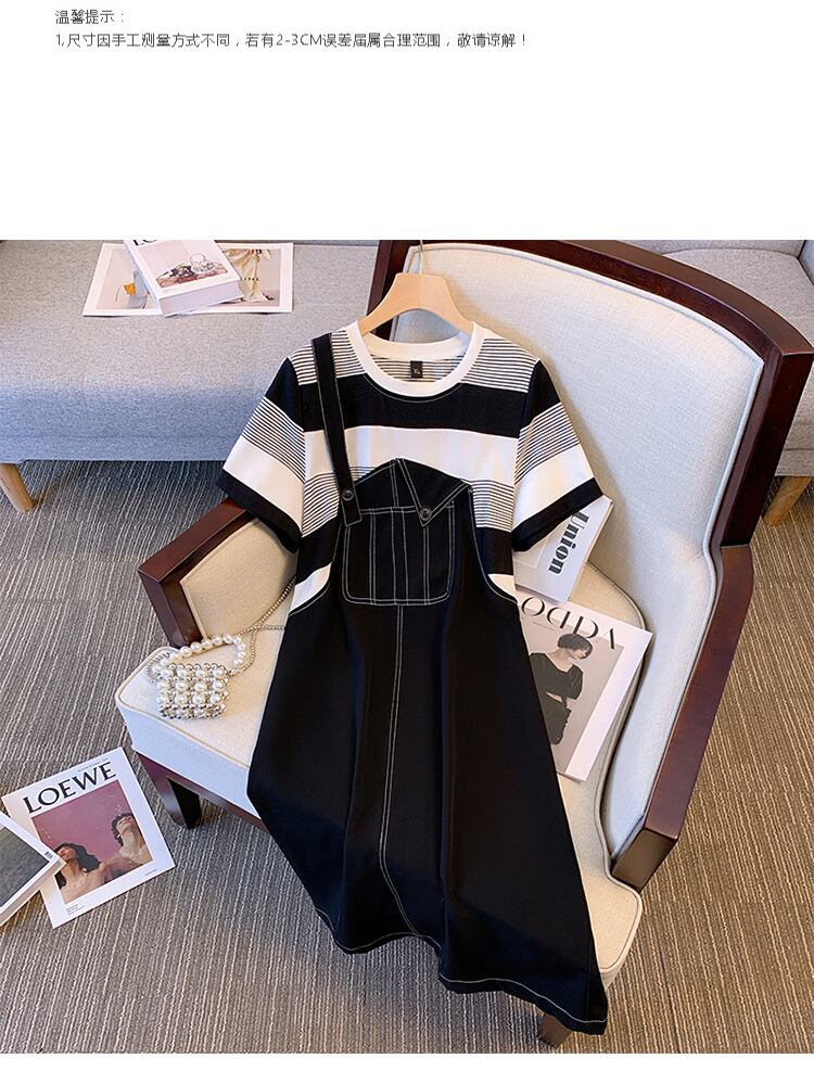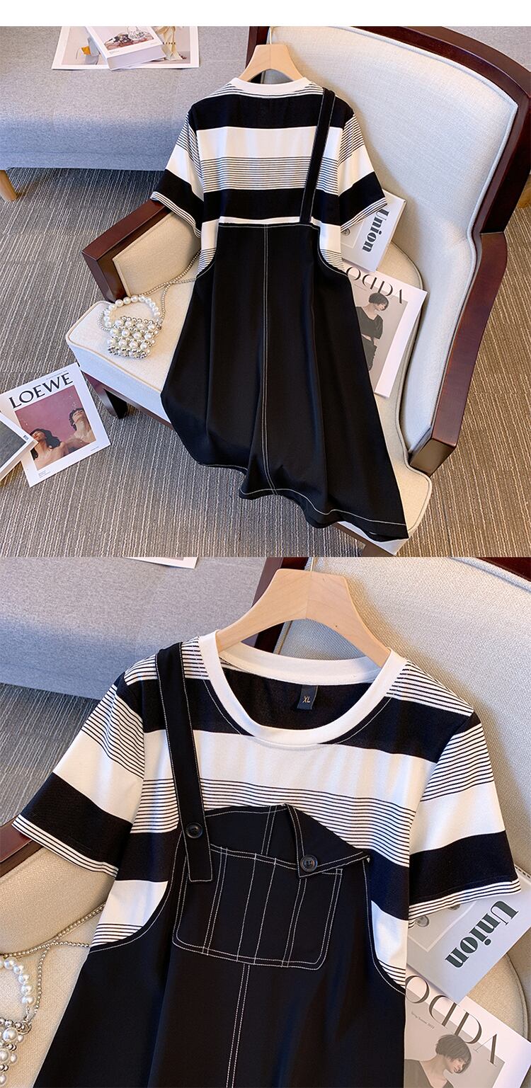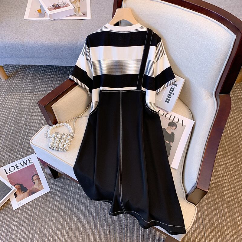 大きいサイズの婦人服 2022 ファットシスター夏の新ファッションオールマッチ薄いステッチストライプフェイクツーピースドレス 大きめサイズ サマー 夏物 8884146773555155