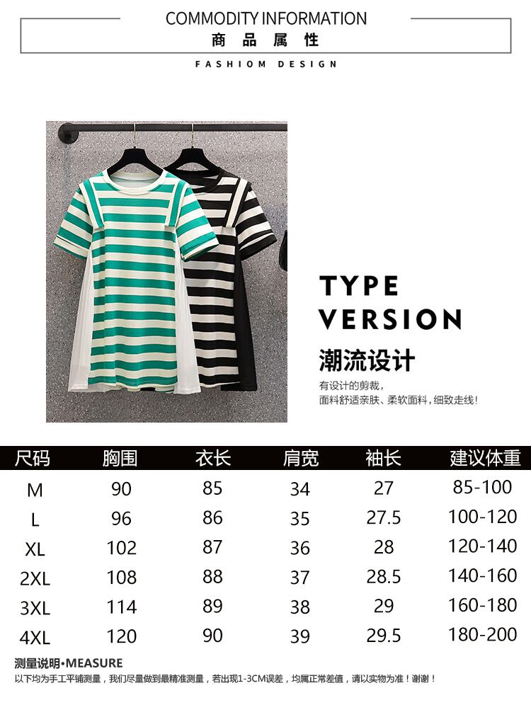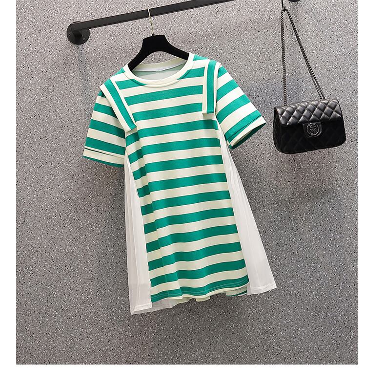 大きいサイズの婦人服2022ファットシスター夏の新しいデザインのプリーツステッチ年齢を減らすストライプのドレス 大きめサイズ サマー 夏物 8884173181101467