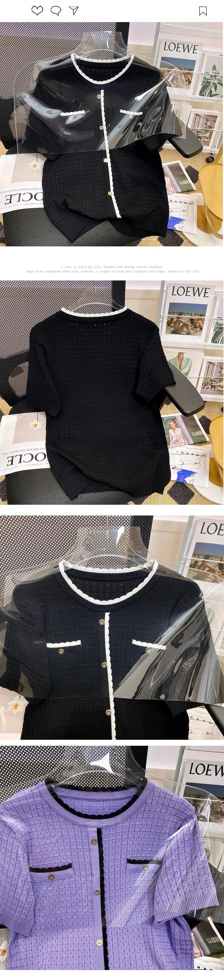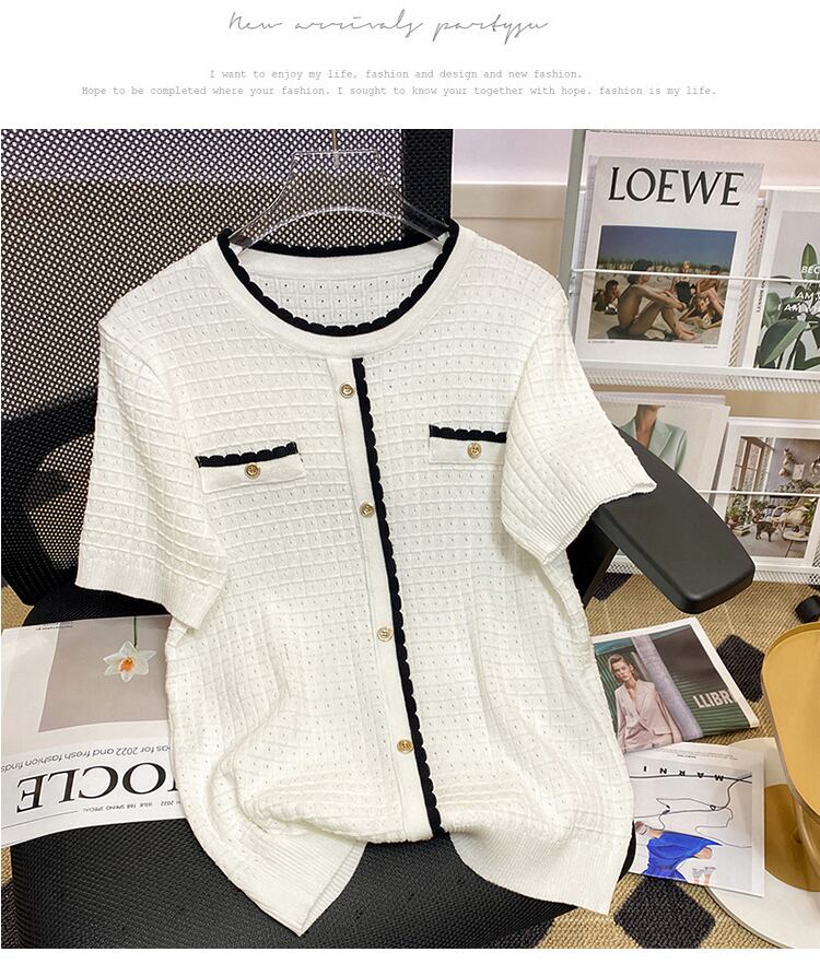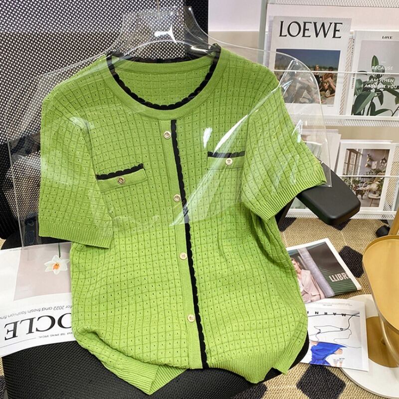 大きいサイズの婦人服2022夏新作ファットシスターゆったり薄手ニット半袖デザインおしゃれラウンドネックTシャツ 大きめサイズ サマー 夏物 Oネック 8884171215038982