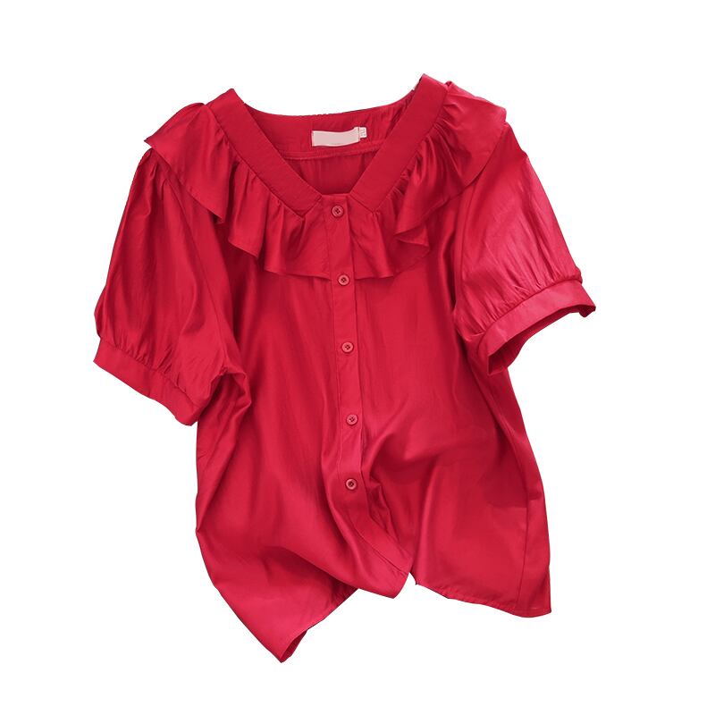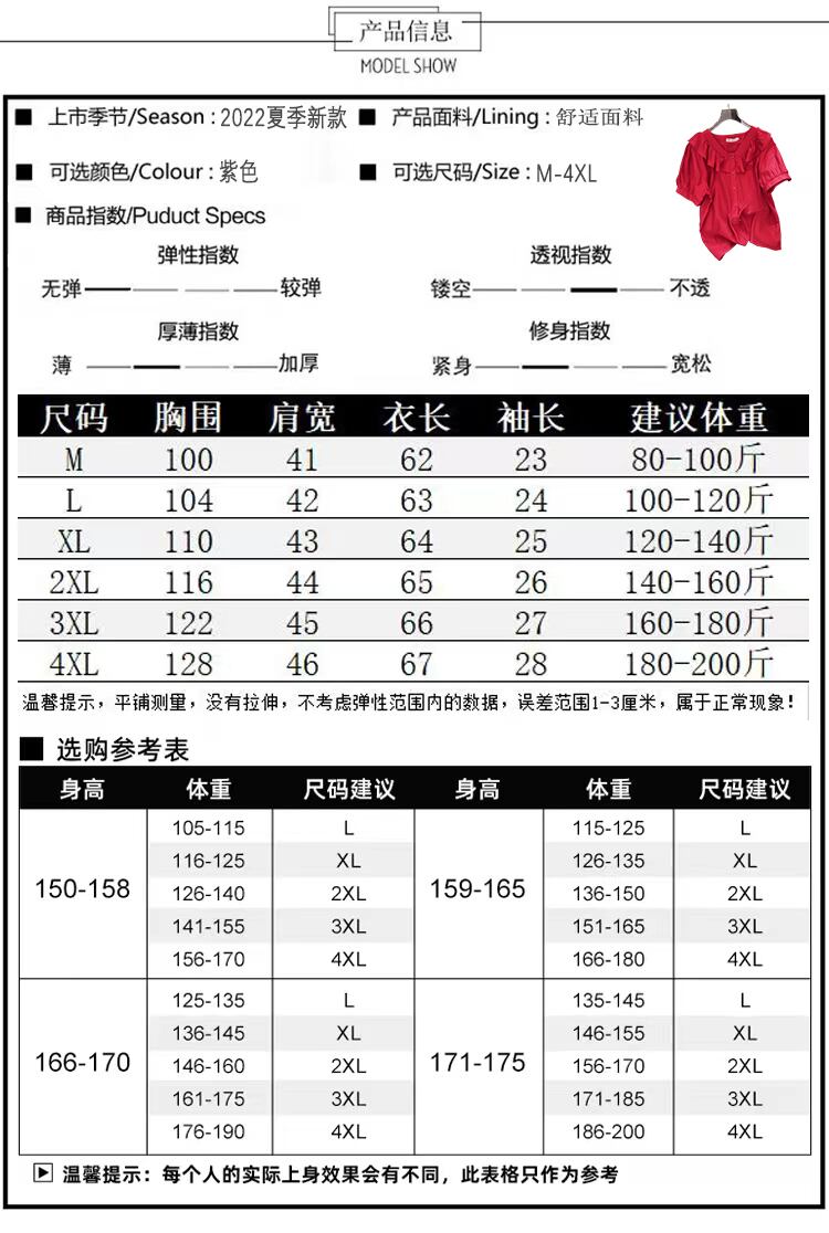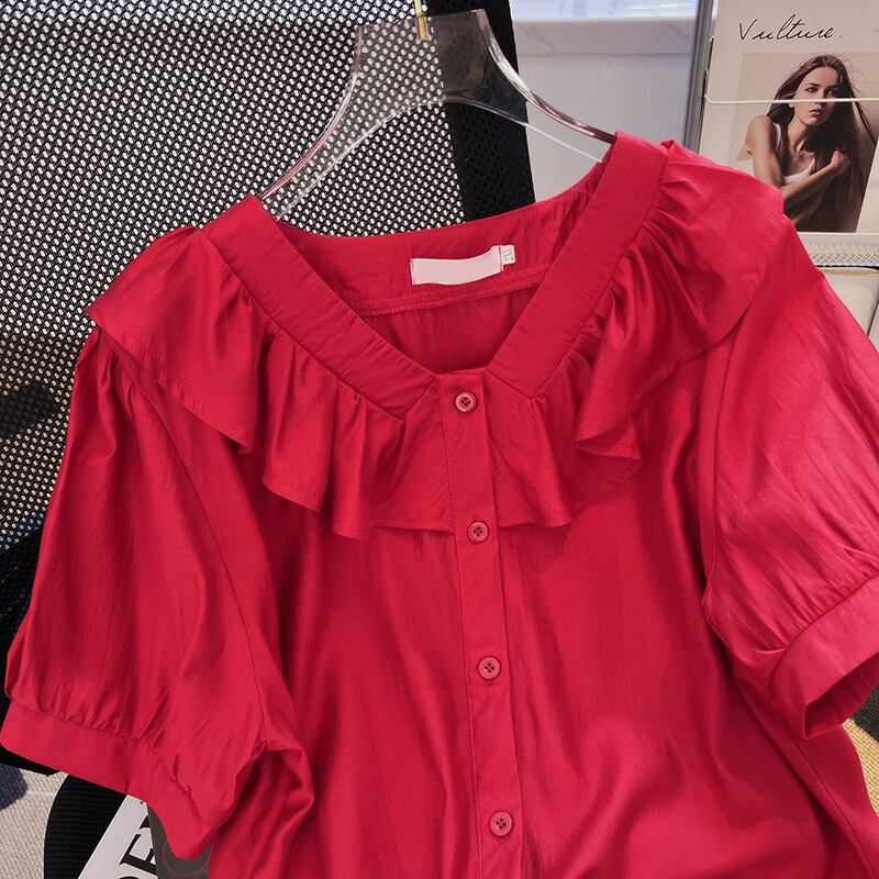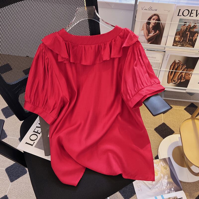 大きいサイズの婦人服 2022 太った姉妹の夏の新しい年齢を減らす半袖フレンチ レトロ シャツ オールマッチ半袖トップ女性 大きめサイズ サマー 夏物 8884176976189576