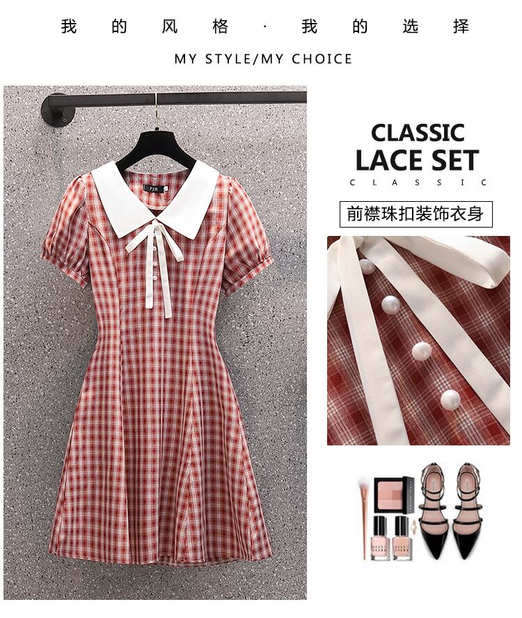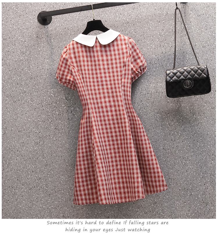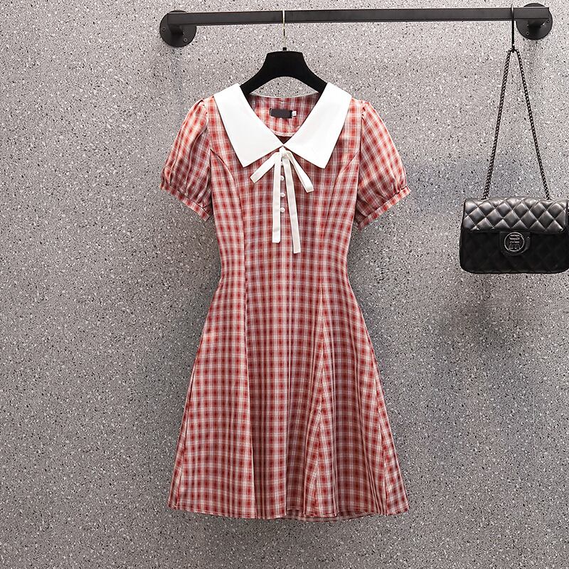 大きいサイズの婦人服 2022 トレンディな女性の夏の新しいファットシスターファッション格子縞オールマッチウエストスリムな気質ドレストレンディ 大きめサイズ サマー 夏物 8884140475638595