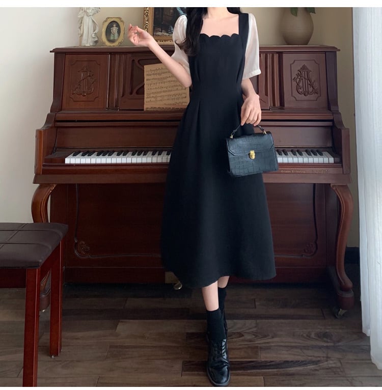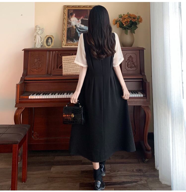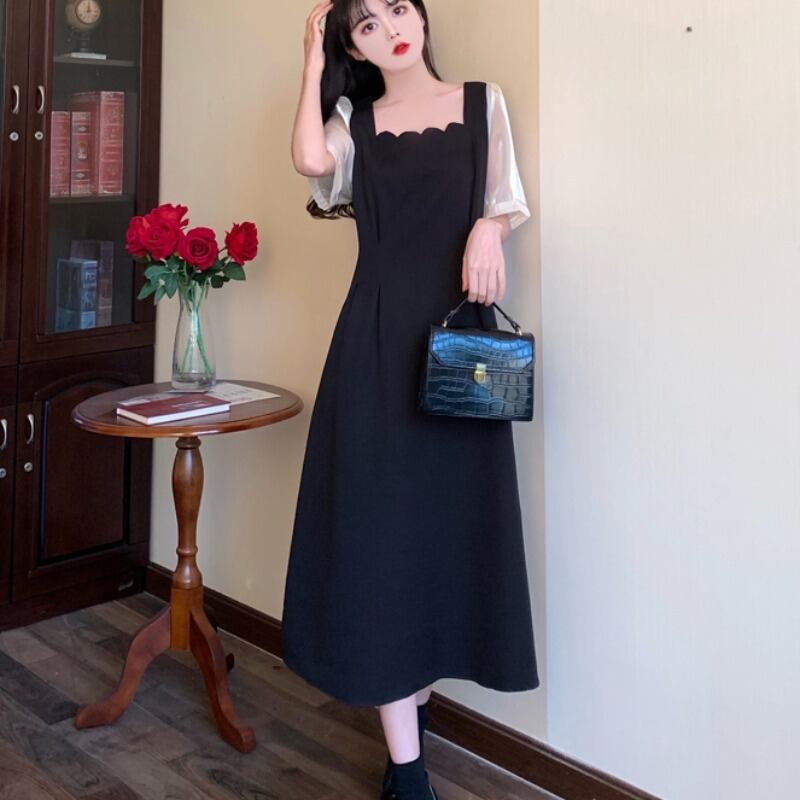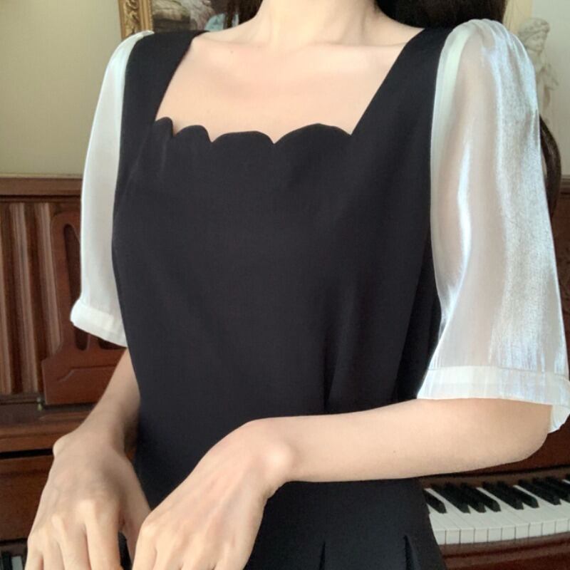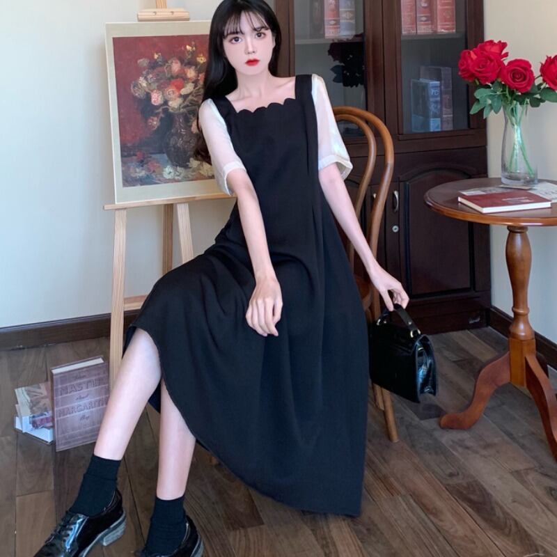 大きいサイズの婦人服2022トレンディな女性の夏の新しいファットシスタールーズで細いウエストファッションステッチスリーブ無地ドレス 大きめサイズ サマー 夏物 ソリッドカラー 8884187326930440