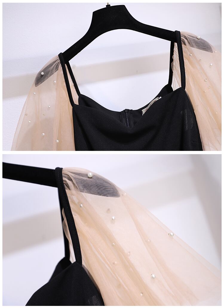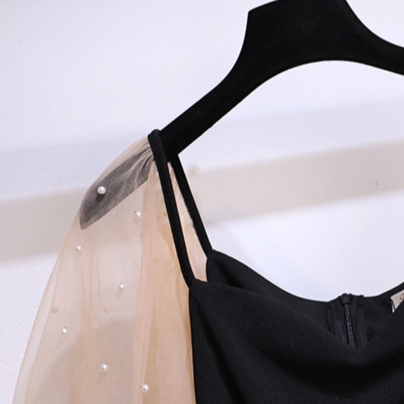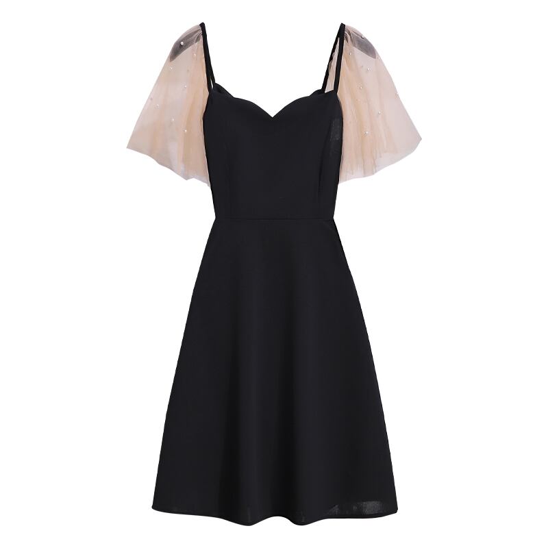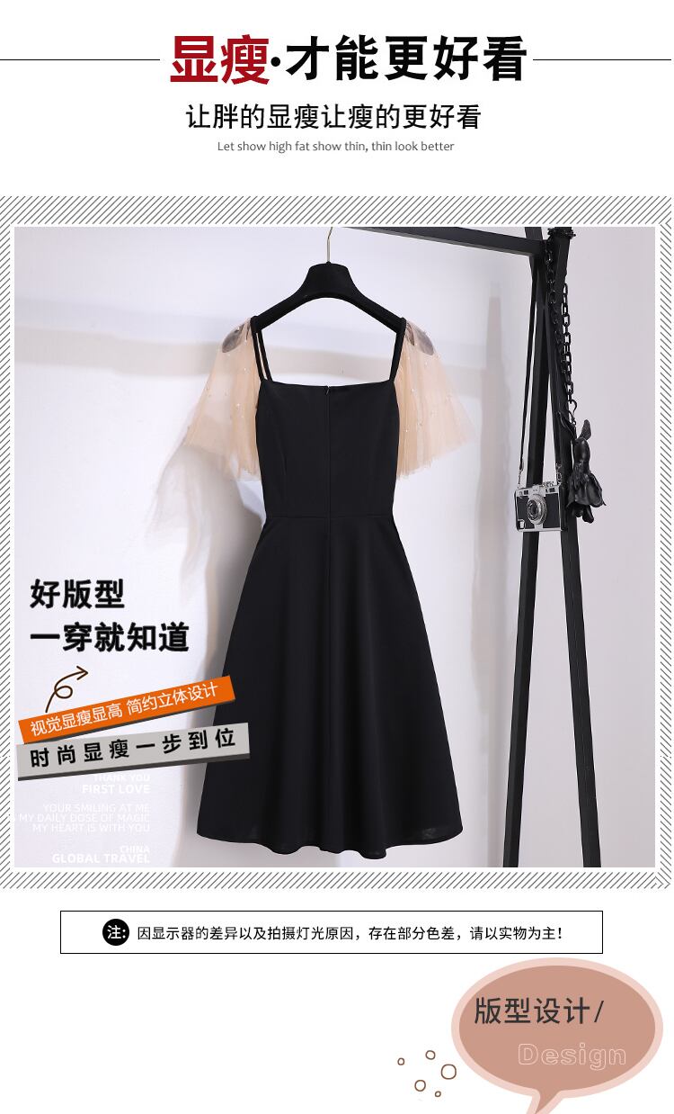 大サイズの婦人服 2022 夏の新ファットシスターカジュアルヘップバーンスタイルステッチフレンチウエストスリムドレス女性 大きめサイズ サマー 夏物 8884176930547667