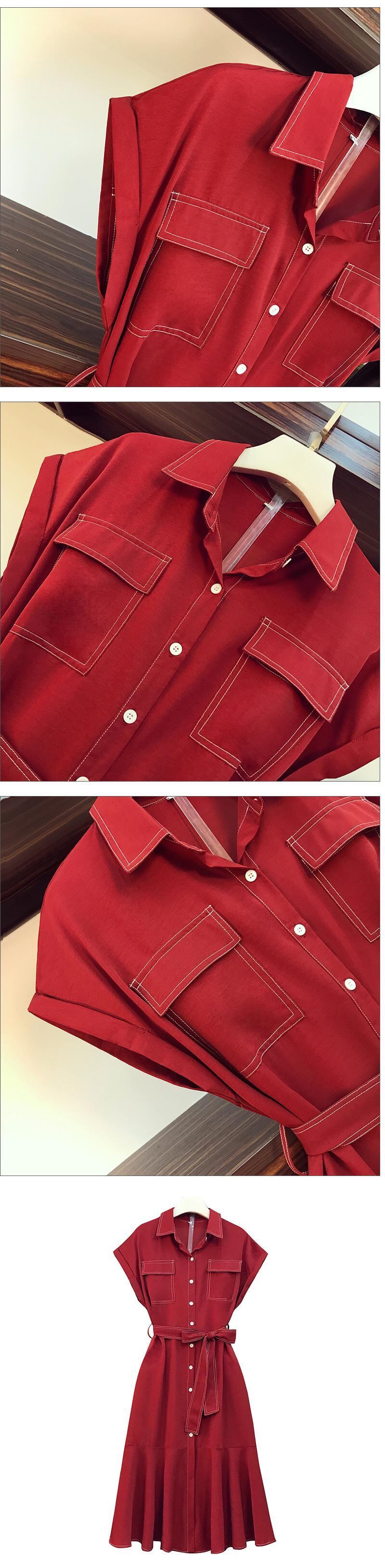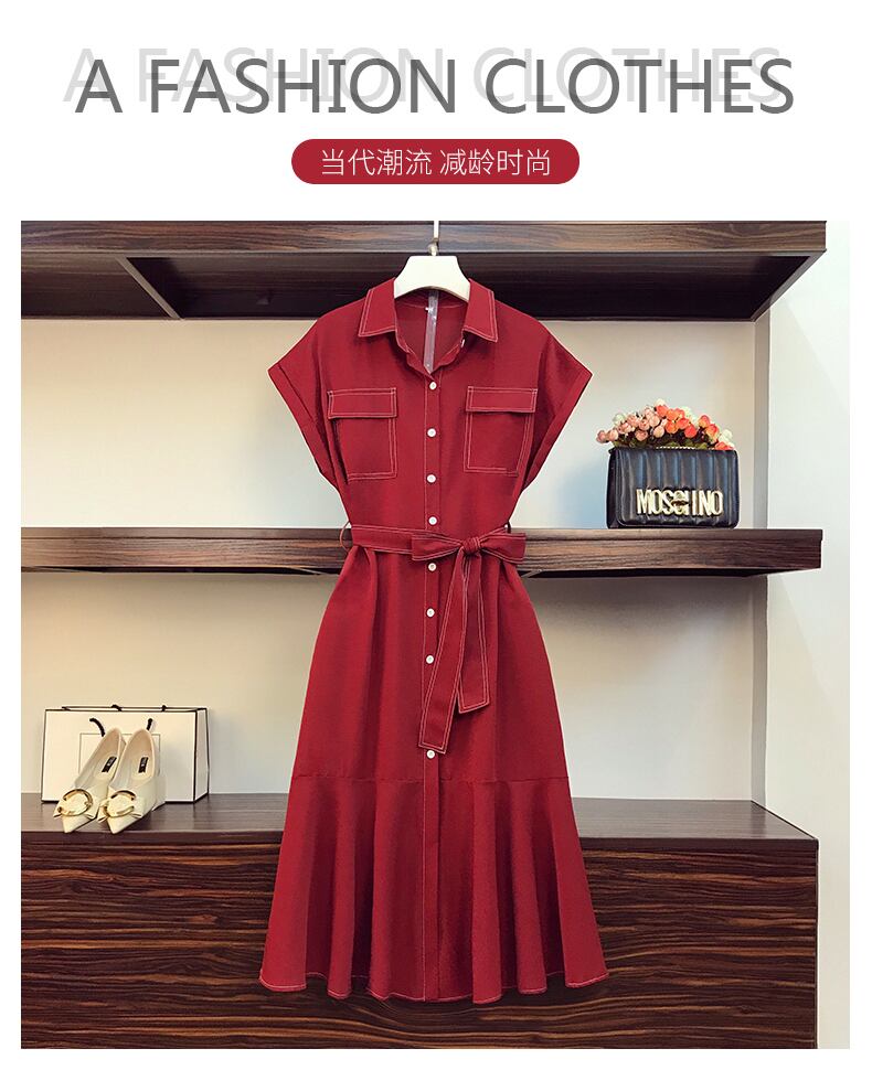 大サイズの婦人服 2022 夏の新ファッションカジュアル気質レトロウエストスリムロング半袖ドレス 大きめサイズ サマー 夏物 8884136844253292