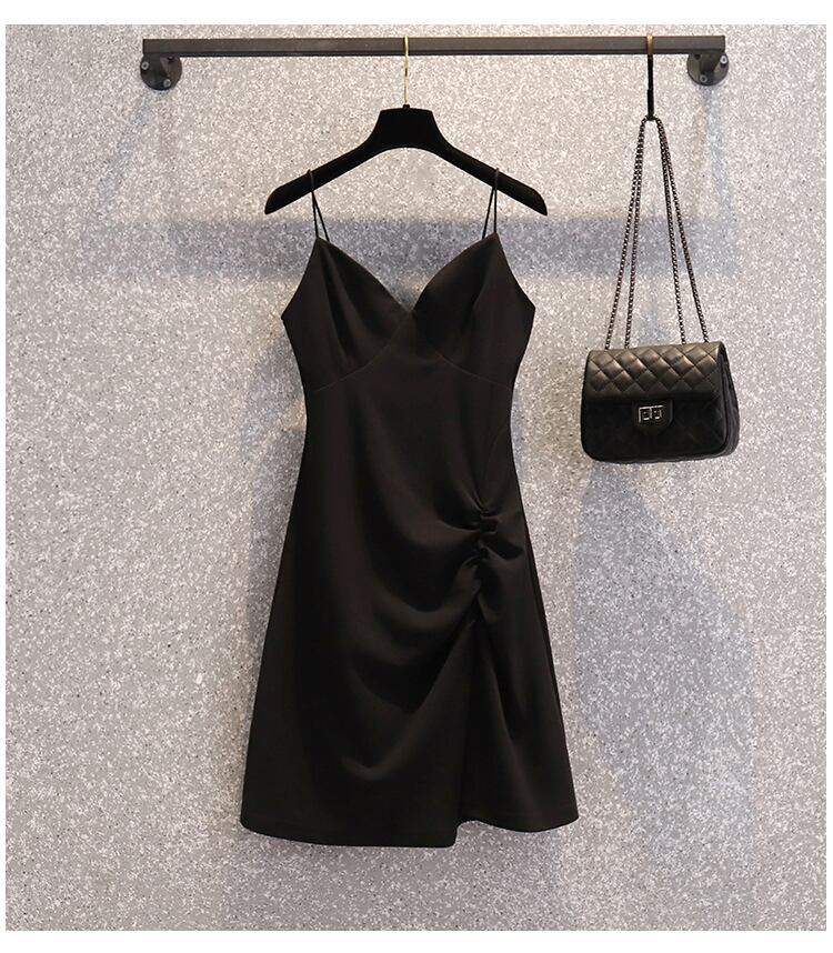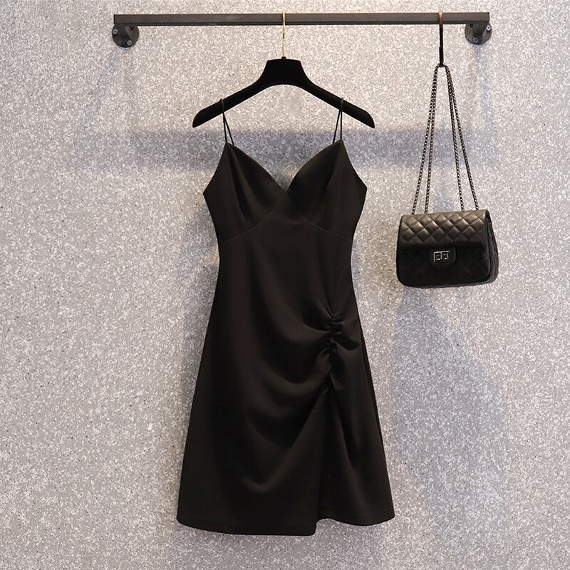 太った姉妹プラスサイズの女性のセクシーな v ネックサスペンダースカート 2022 ハイエンド夏のファッションファッション年齢を減らすオールマッチドレス 大きめサイズ サマー 夏物 Vネック 8884169988366685