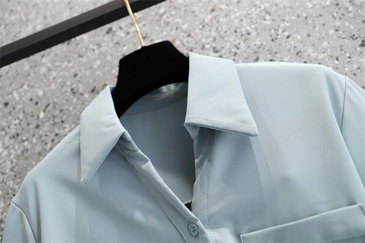 大きいサイズの女性のルーズでスリムなトップス 2022 秋の新しいファッショナブルなポロ襟長袖チェーン長袖シャツ ロング 大きめサイズ オータム 秋物 8884182043438429
