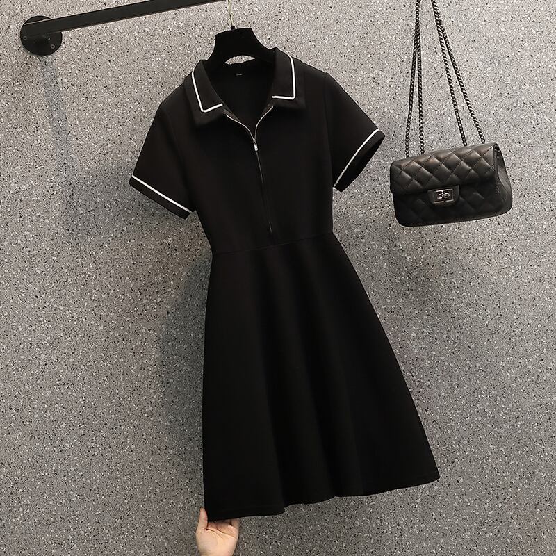 大サイズの婦人服 2022 夏の新しいファットシスターファッションラペルカジュアルカバーベリーウエストショー薄くて年齢を下げるドレス 大きめサイズ サマー 夏物 8884149920635687