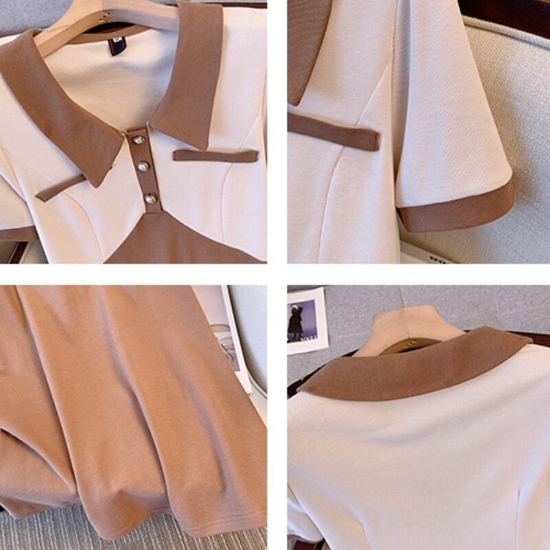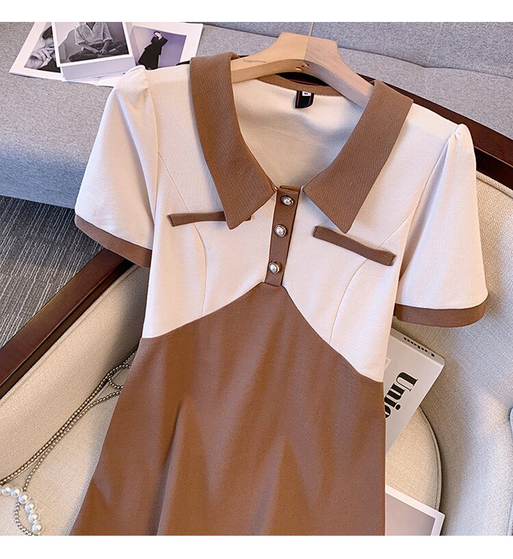 大きいサイズの婦人服 2022 トレンディな女性の夏の新しいファットシスターファッションラペルステッチハイエンドの西洋スタイルの年齢を減らすドレス 大きめサイズ サマー 夏物 8884135857973280