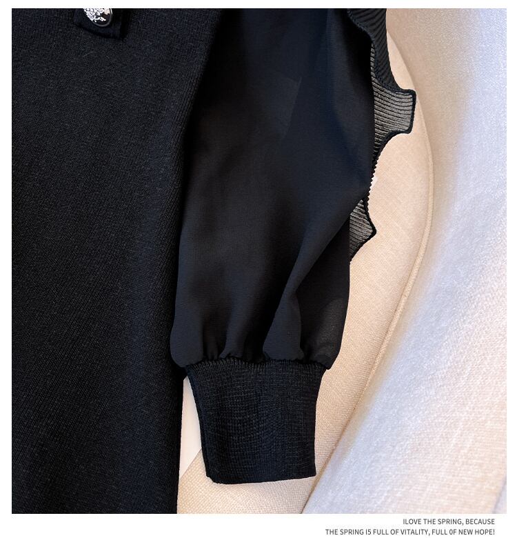 大きいサイズの婦人服 2022 ファットシスター秋の新しいルーズで薄いランタンスリーブステッチ気質の妖精のドレス 大きめサイズ オータム 秋物 8884187842728616