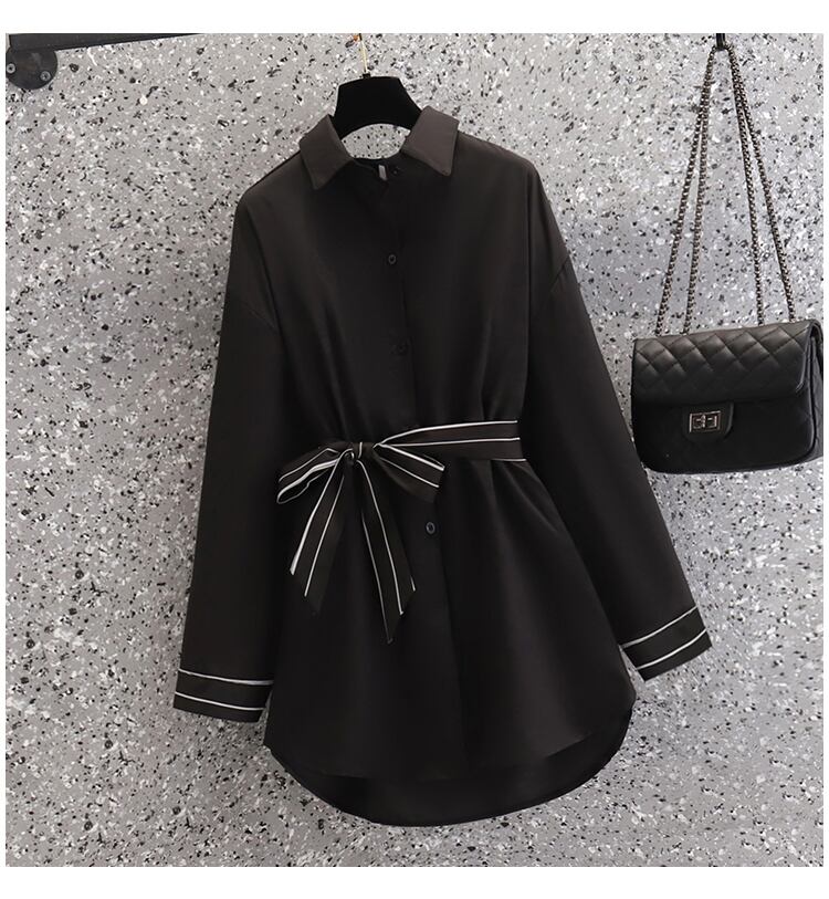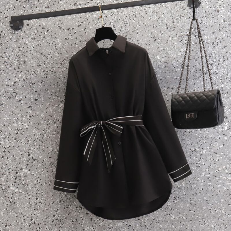 大きいサイズの婦人服 2022 ファットシスター秋の新ファッションシャツルーズウエスト薄い長袖トップドレス ロング 大きめサイズ オータム 秋物 8884112673249225
