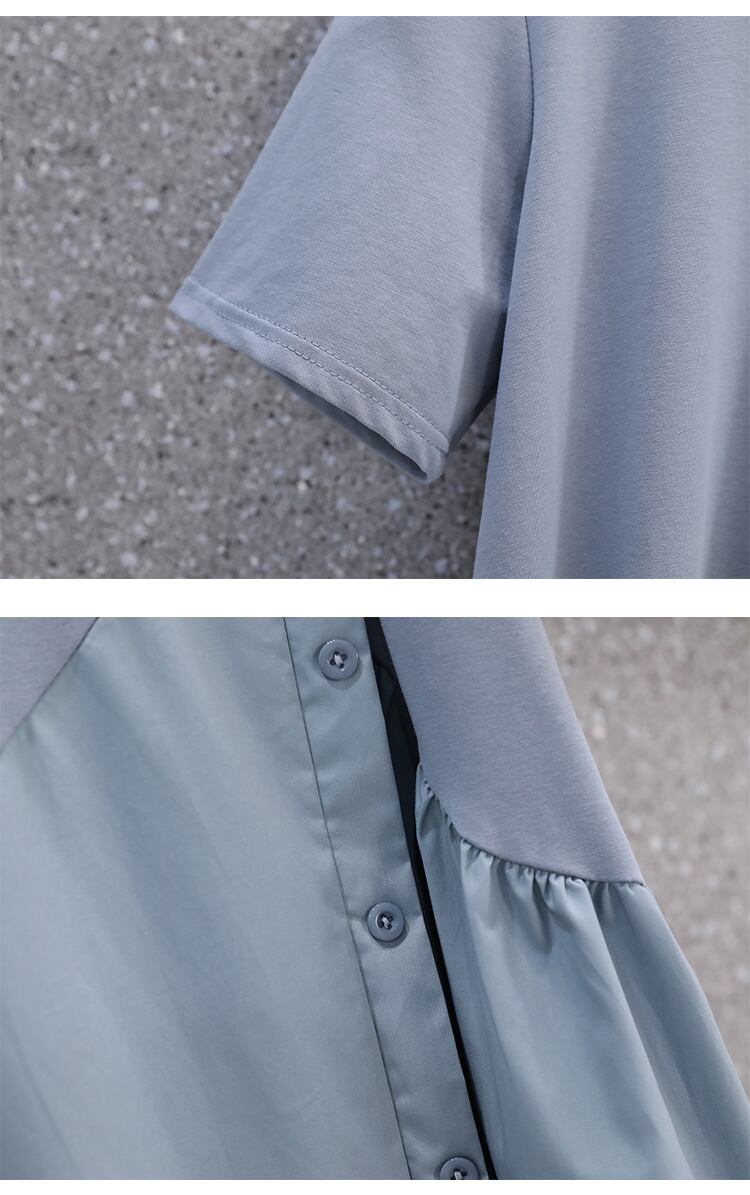大きいサイズの婦人服 2022 ファットシスター夏の新時代の削減カバーお腹ルーズウエストウエストショー薄い気質半袖ドレス 大きめサイズ サマー 夏物 8884197804362794