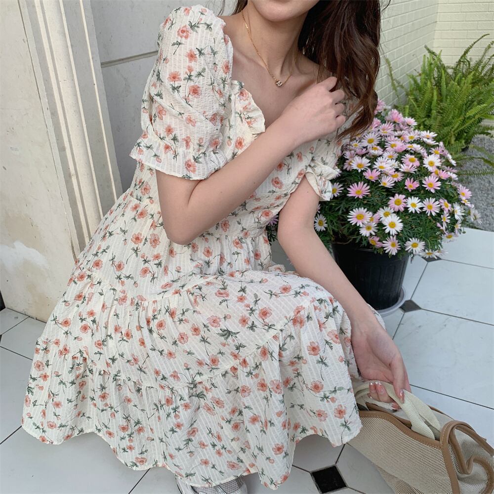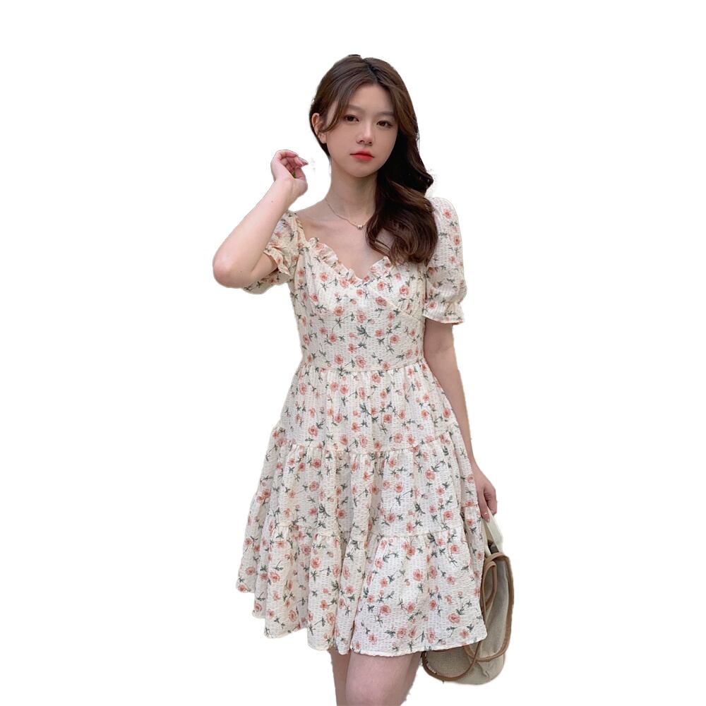 大きいサイズの婦人服 2022 ファット シスター夏の新しいファッション ミッドレングス薄い花びら V ネック花柄ドレス 大きめサイズ サマー 夏物 Vネック 8884131593787676