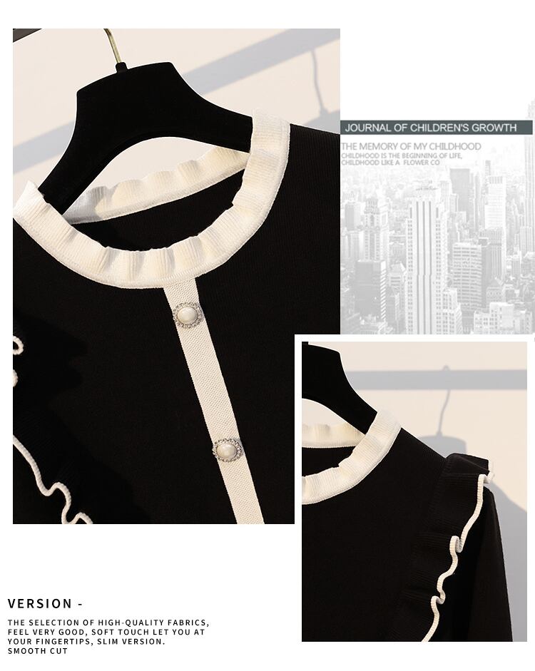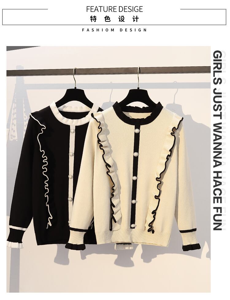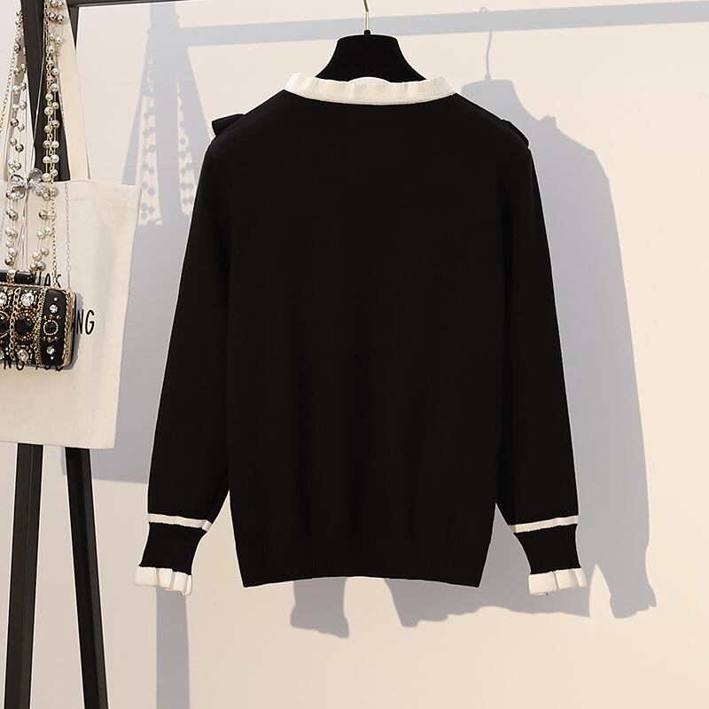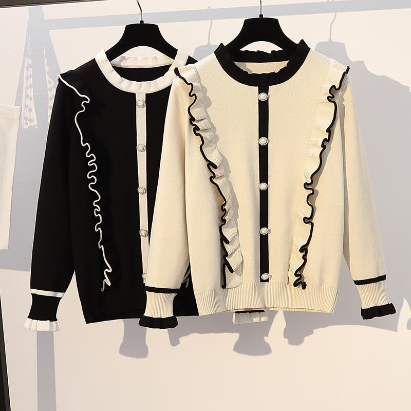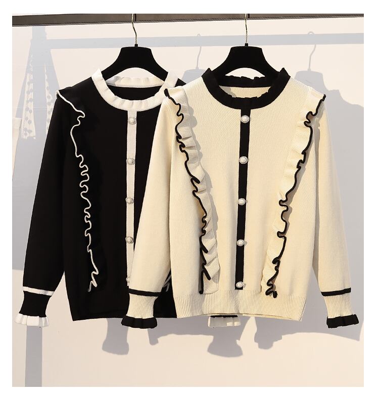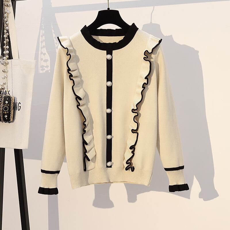 大きいサイズの婦人服 2022 ファットシスター秋の新しいプルオーバーオールマッチきのこエッジパールボタンセーターセータートップ 大きめサイズ オータム 秋物 真珠 8884167313264282