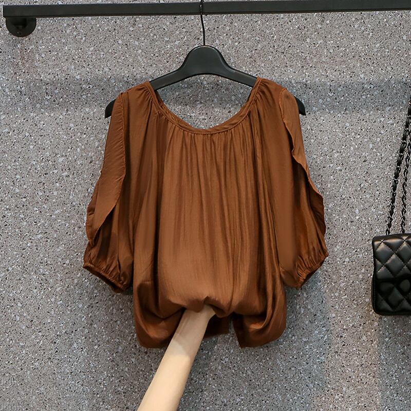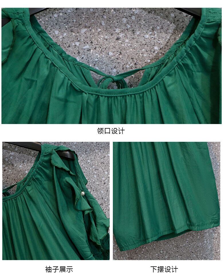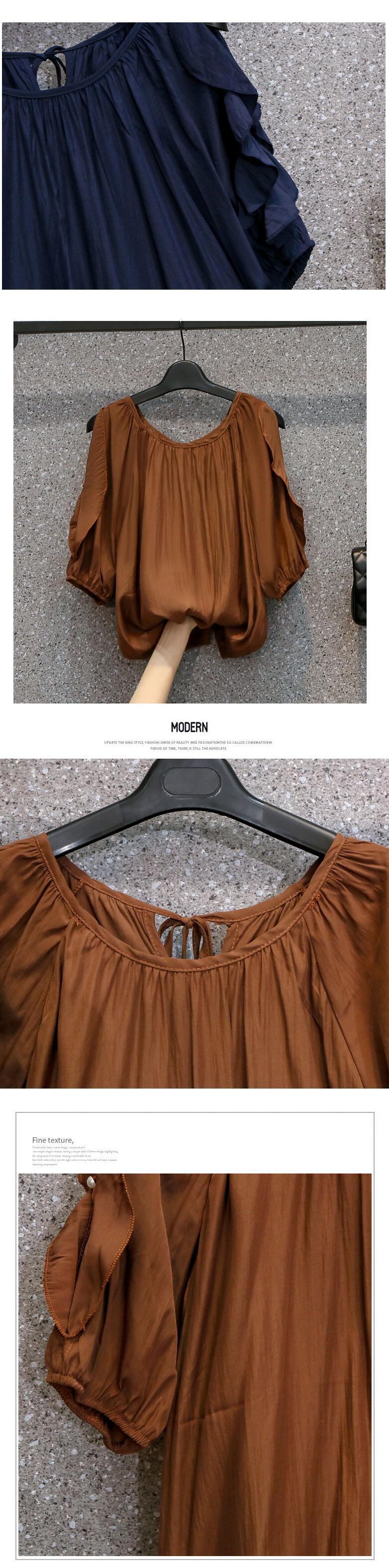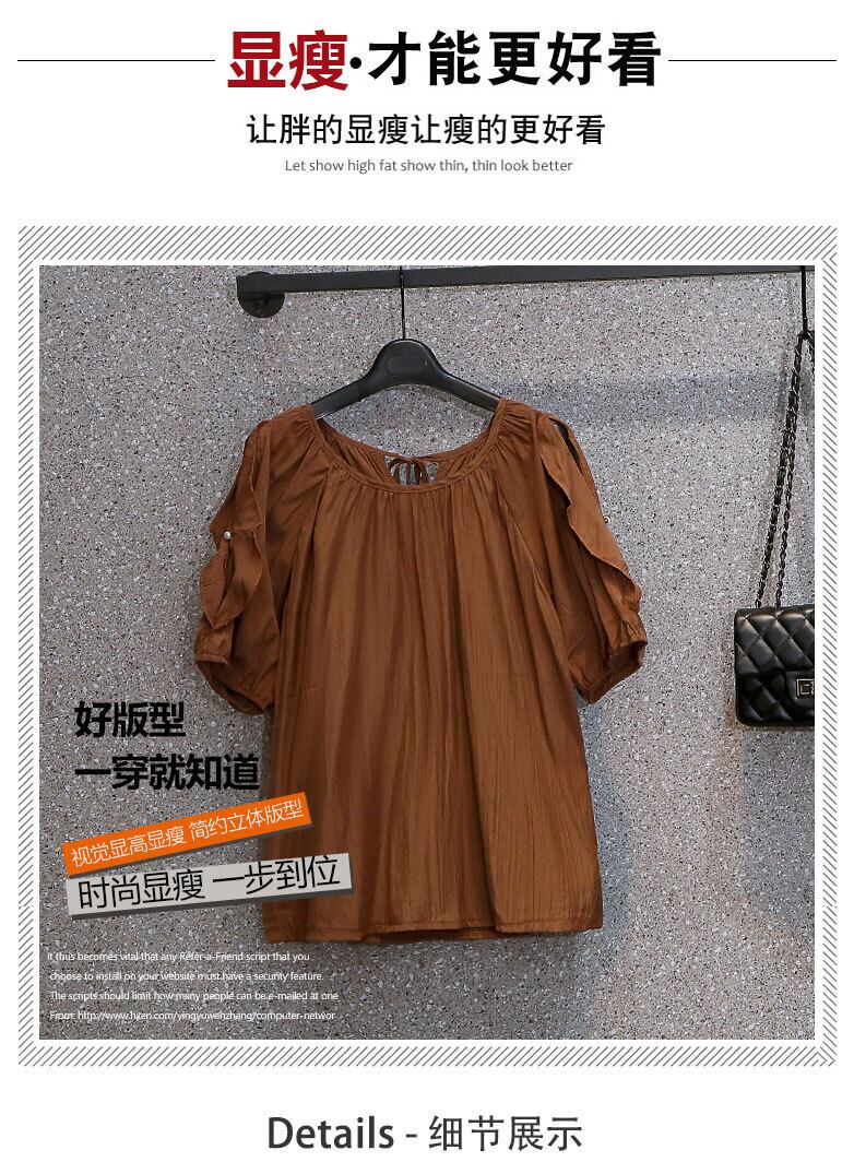 大サイズの婦人服 2022 脂肪姉妹夏新ラウンドネック緩いフリルファッション tシャツトップシフォンシャツ女性 大きめサイズ サマー 夏物 Oネック 8884181964659998