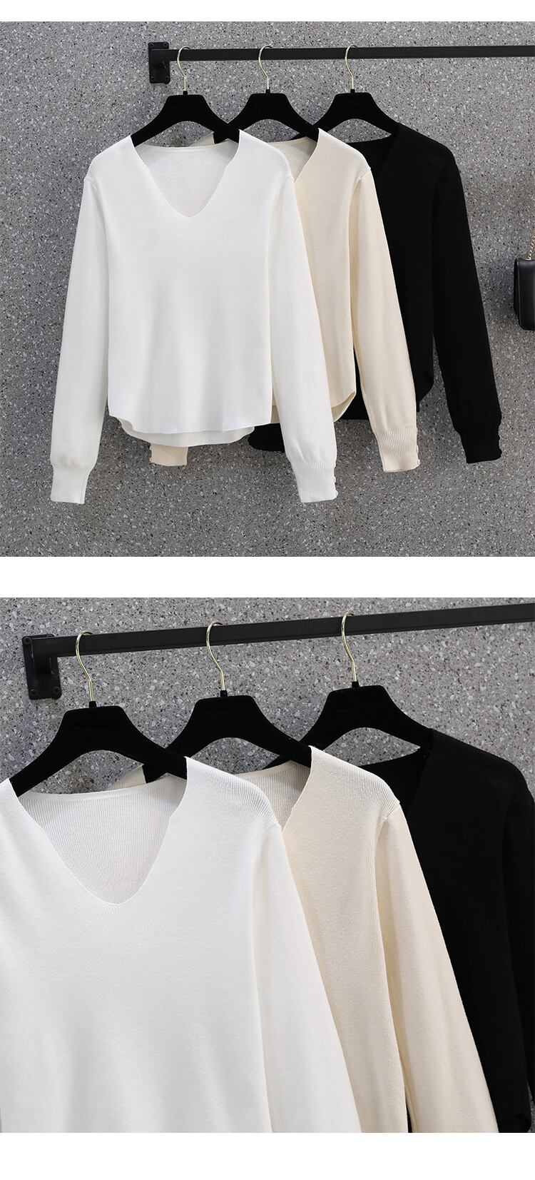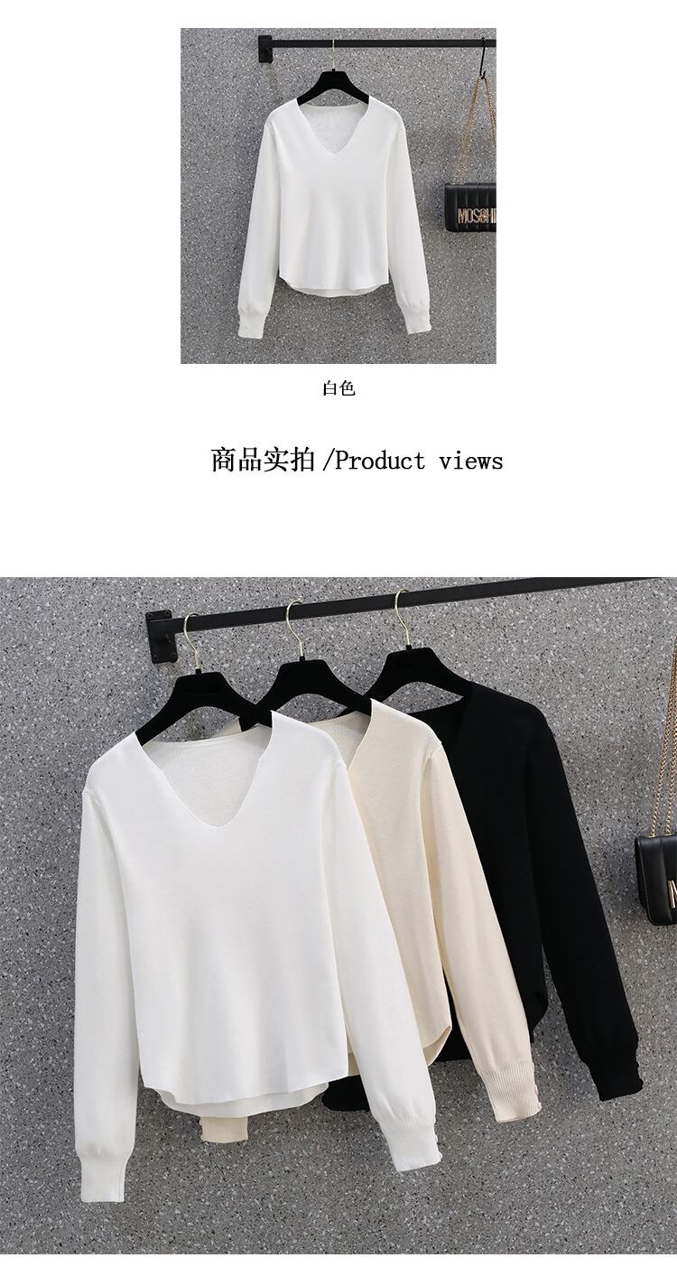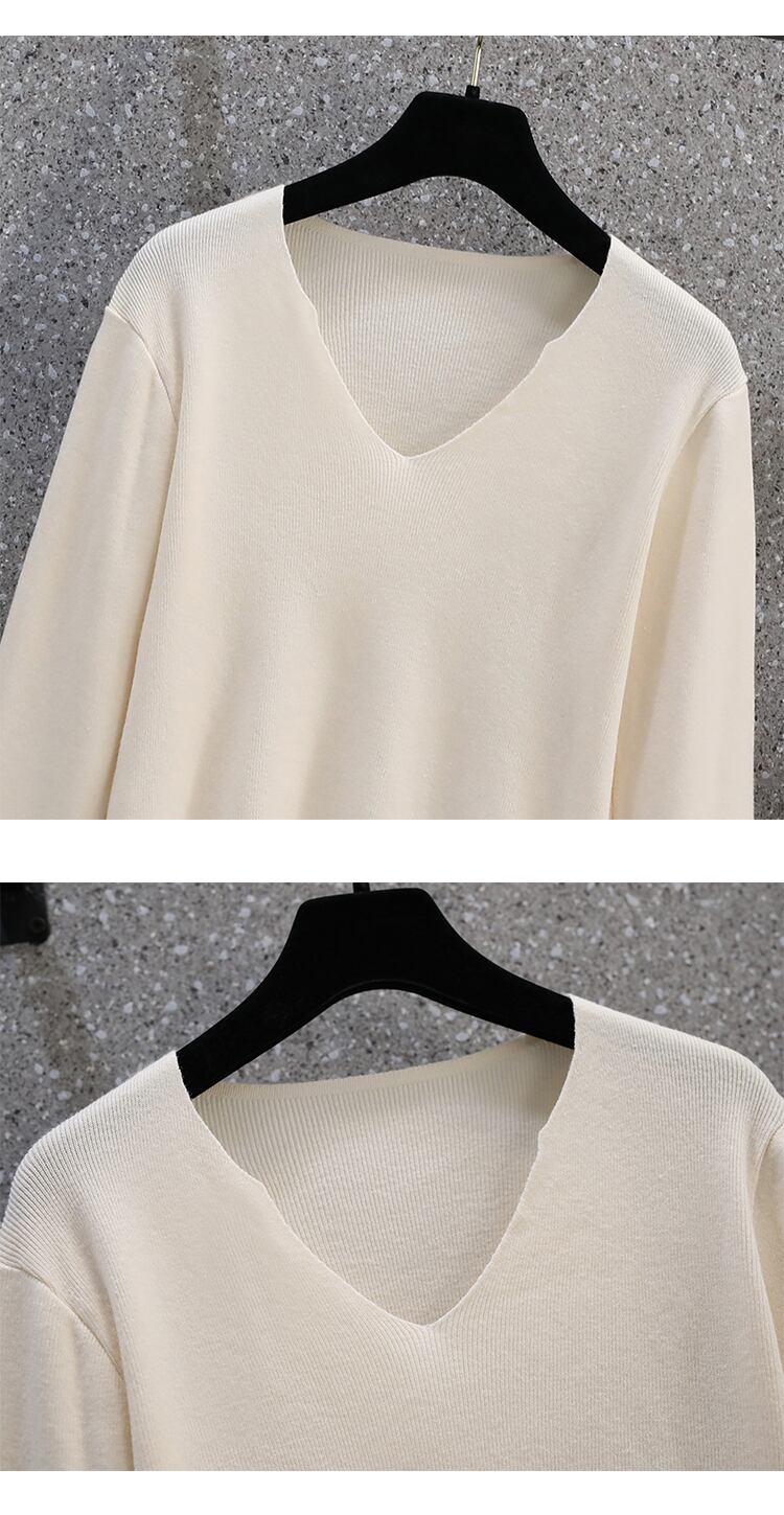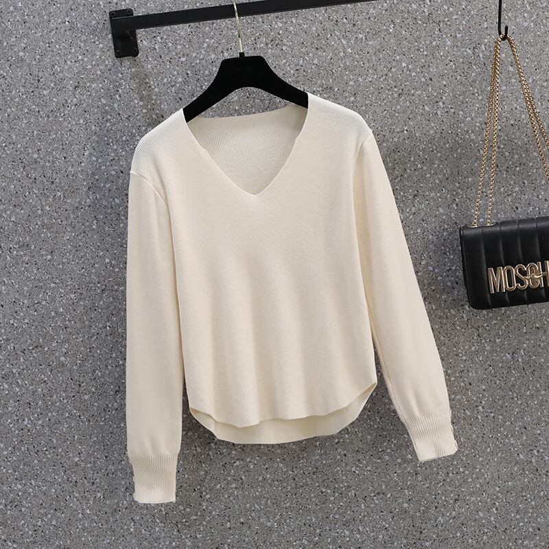 大きいサイズの婦人服2022ファットシスター秋の新しいフレンチオールマッチ無地シンプルで薄いボトムスニットセータートップ 大きめサイズ オータム 秋物 ソリッドカラー 8884171162138056