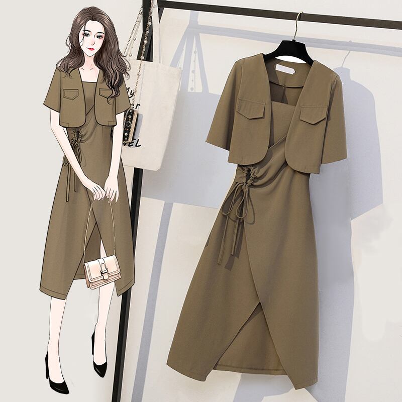 大きいサイズの女性の 2022 ファット シスター夏の新しいサスペンダー ドレスは薄くて腹スーツ ジャケット ツー ピースをカバーします 大きめサイズ サマー 夏物 8884181302622673