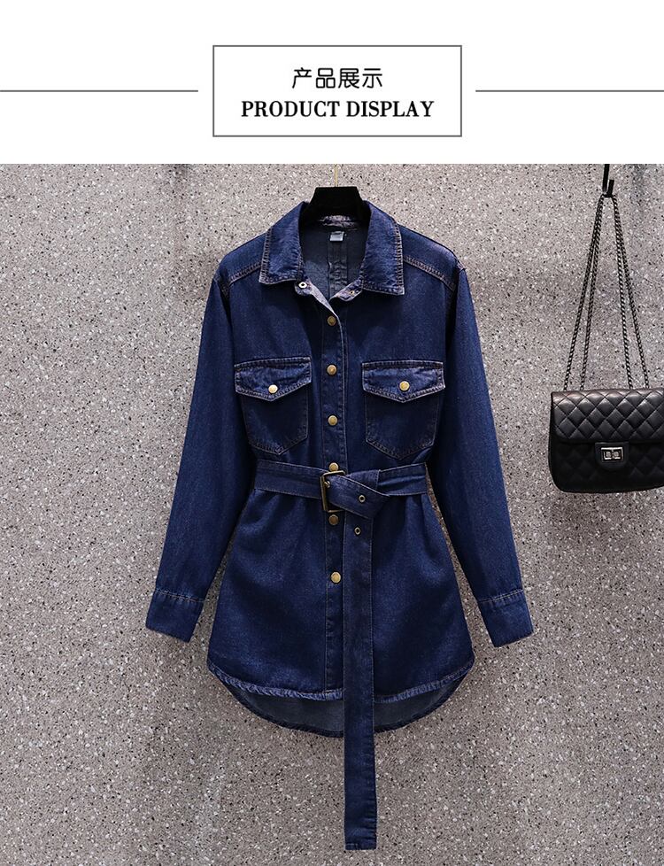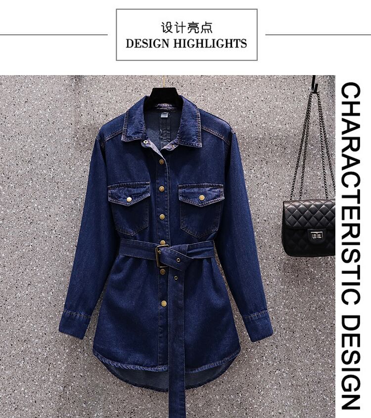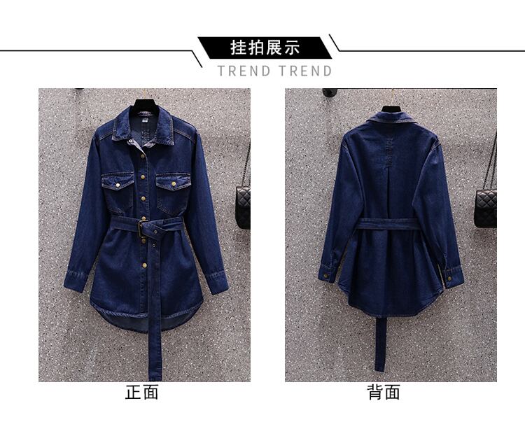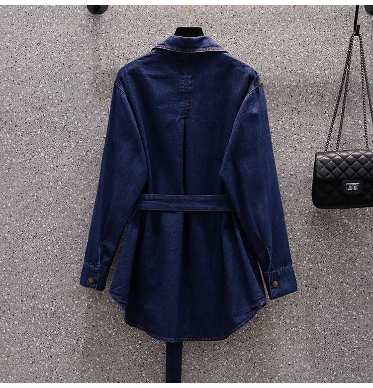 大きいサイズの婦人服 2022 秋の新しいファットシスターファッションレトロウエストデザインニッチシャツデニムジャケット 大きめサイズ オータム 秋物 8884155557255064