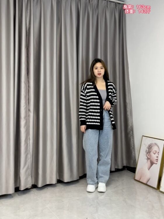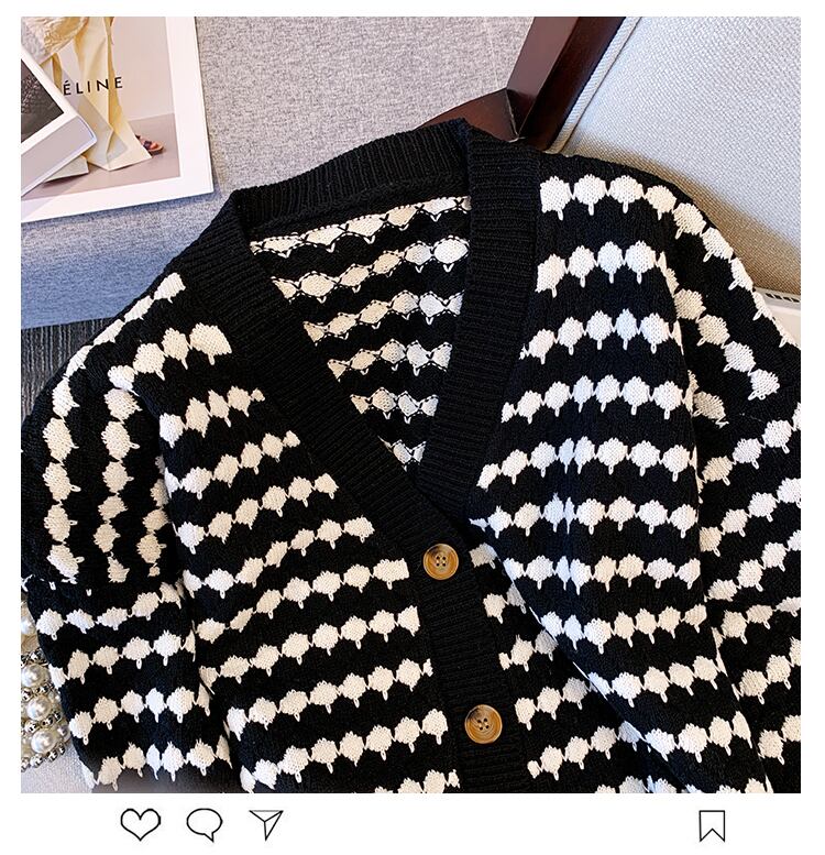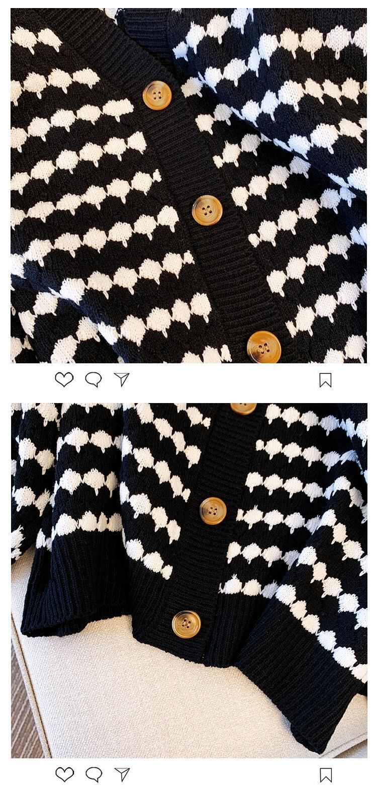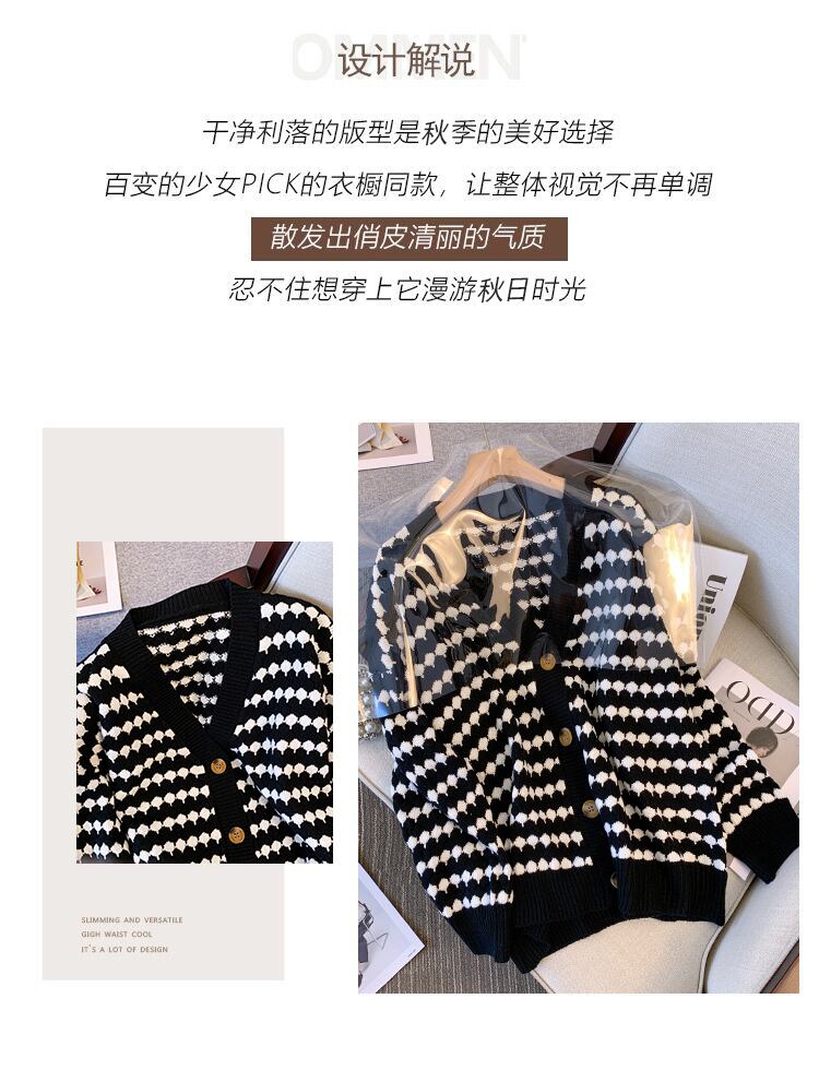 大きいサイズの婦人服 2022 秋の新作ファットシスターウエスタンスタイルの年齢を減らすゆるいストライプオールマッチニットカーディガンニットセーター 大きめサイズ オータム 秋物 8884182894967052