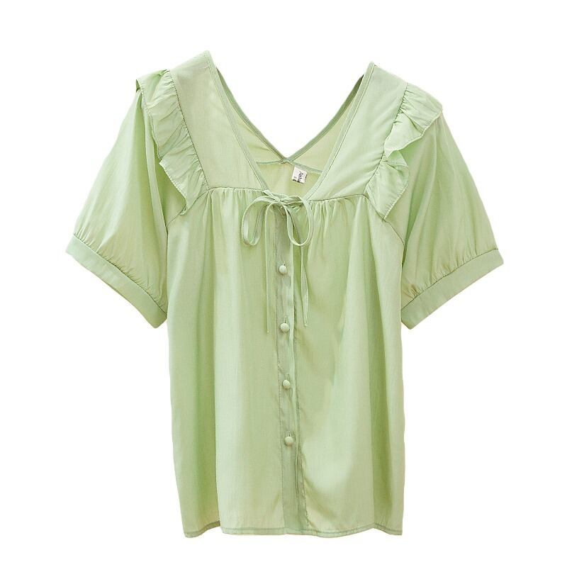 大きいサイズの婦人服 2022 トレンディな女性の夏の新しい太った姉妹のファッションの気質の年齢を減らすすべての試合のカバー腹ショー半袖薄いシャツ 大きめサイズ サマー 夏物 8884149345061393