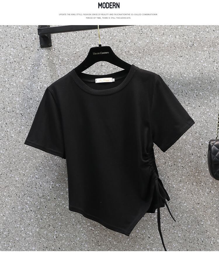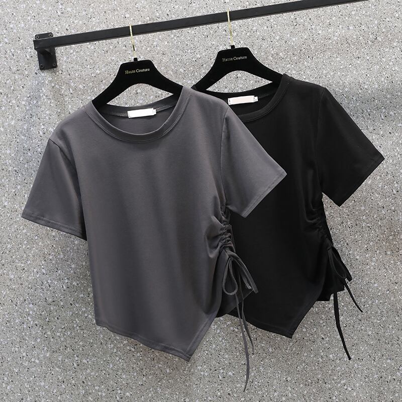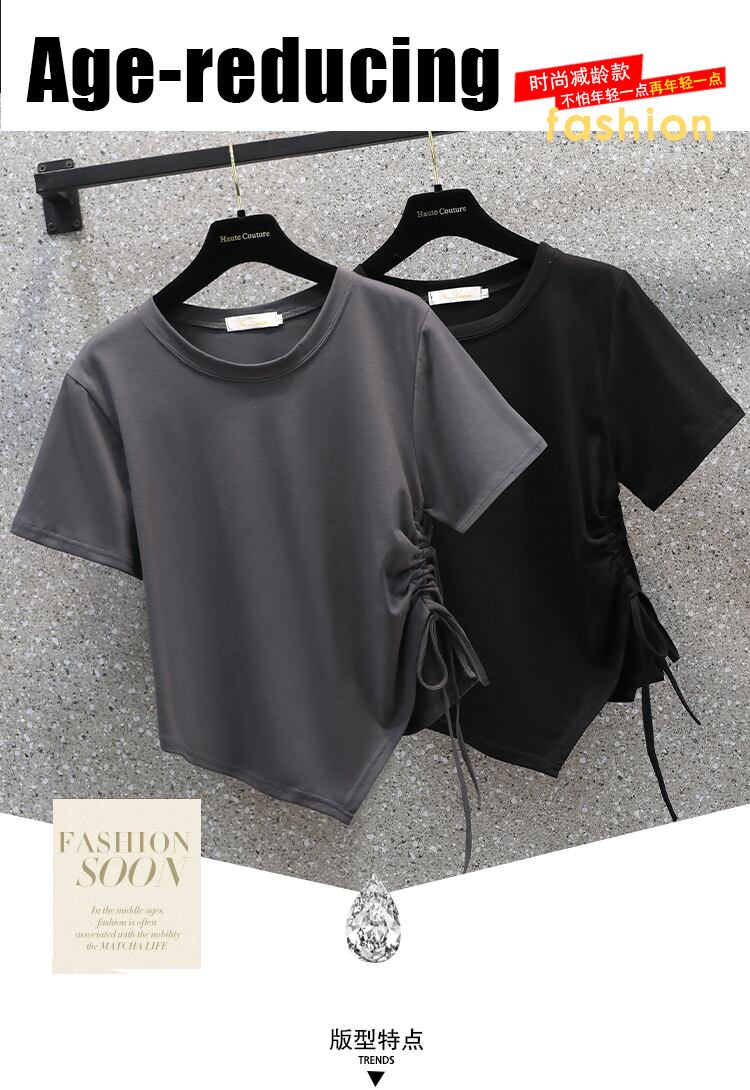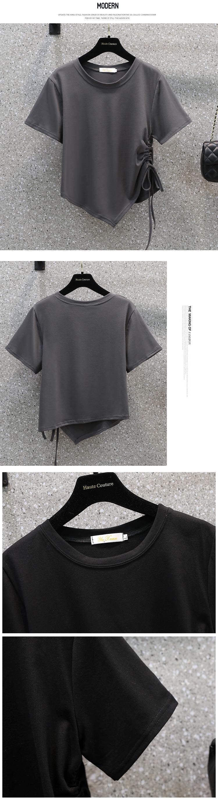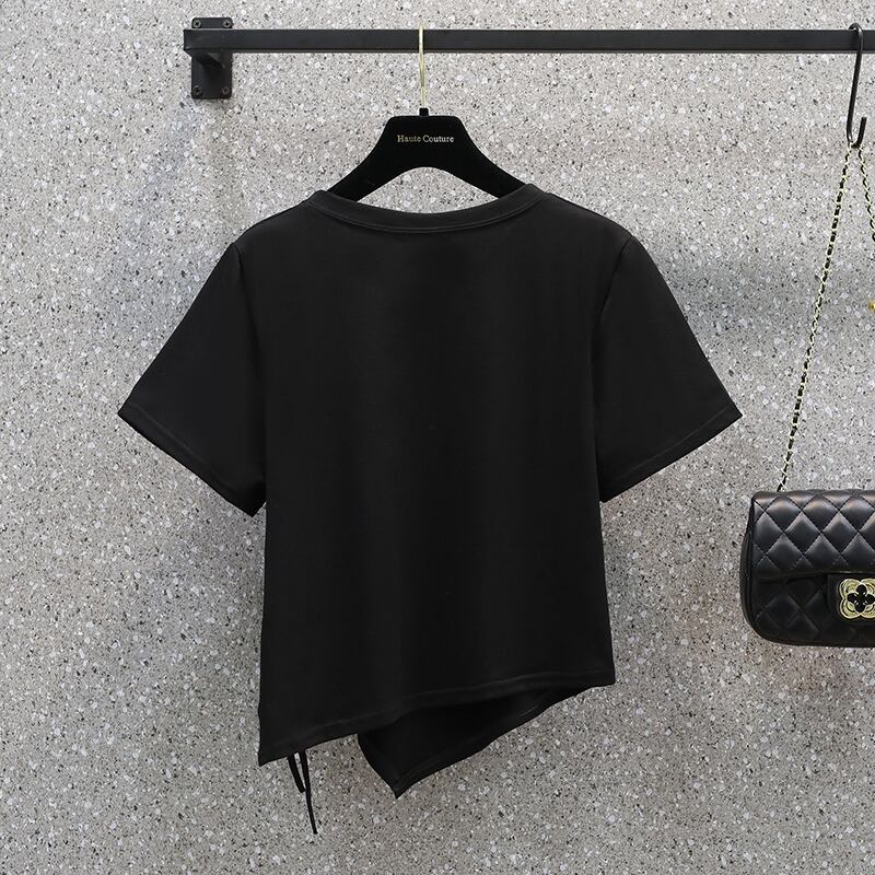 大きいサイズ 婦人服 2022 ファット シスター 夏 新作 オールマッチ 薄手 年齢 ダウン 前肩 Tシャツ イレギュラー 半袖 トップス 大きめサイズ サマー 夏物 8884187705642886