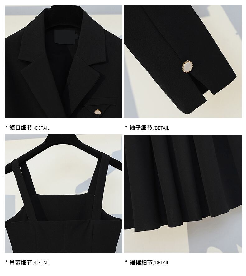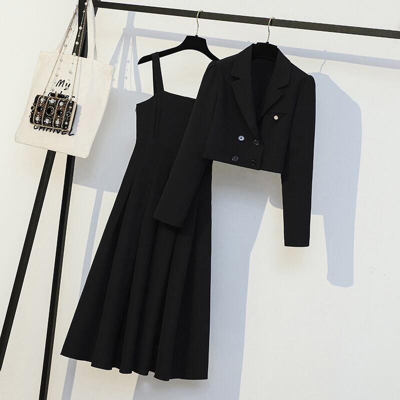 大きいサイズの婦人服 2022 ファットシスター秋の新しいサスペンダードレスショートブレザーファッションツーピーススーツ 大きめサイズ オータム 秋物 8884127184082824
