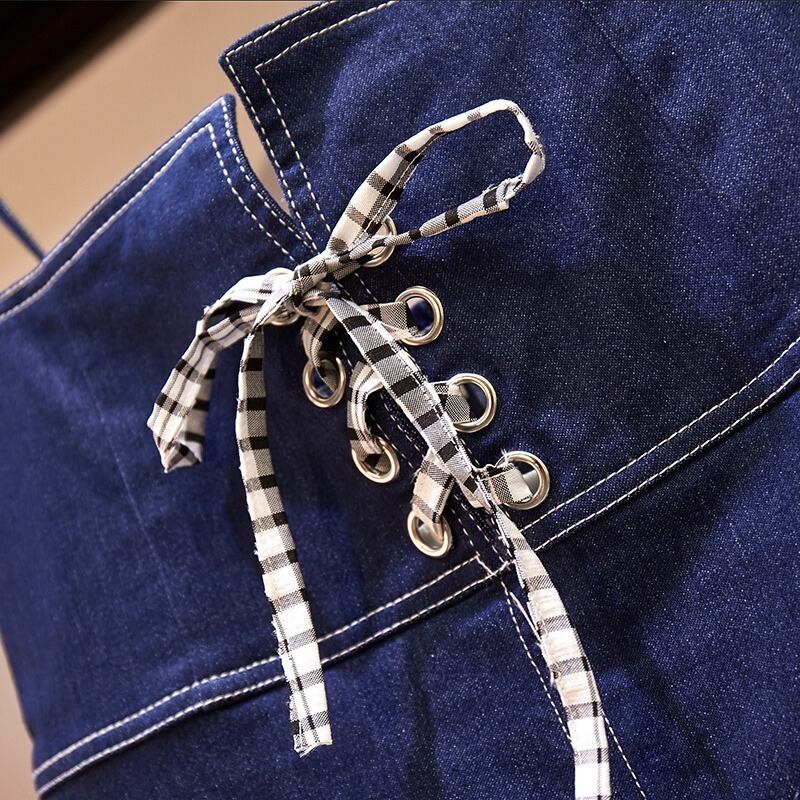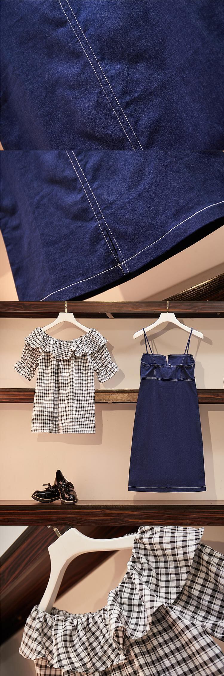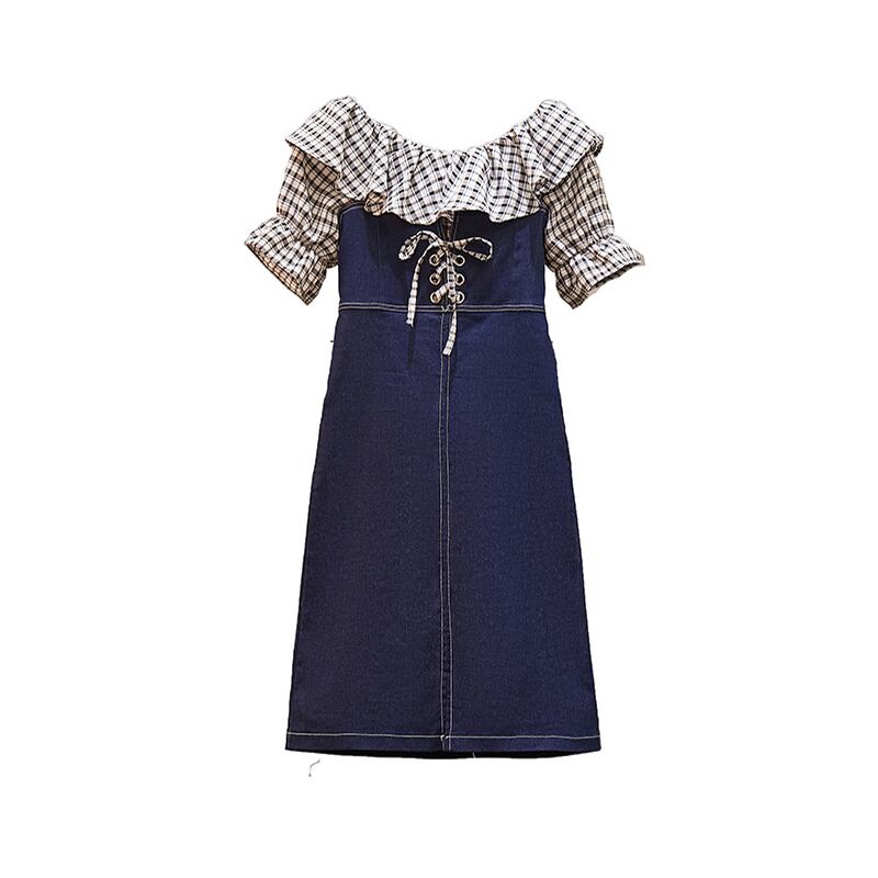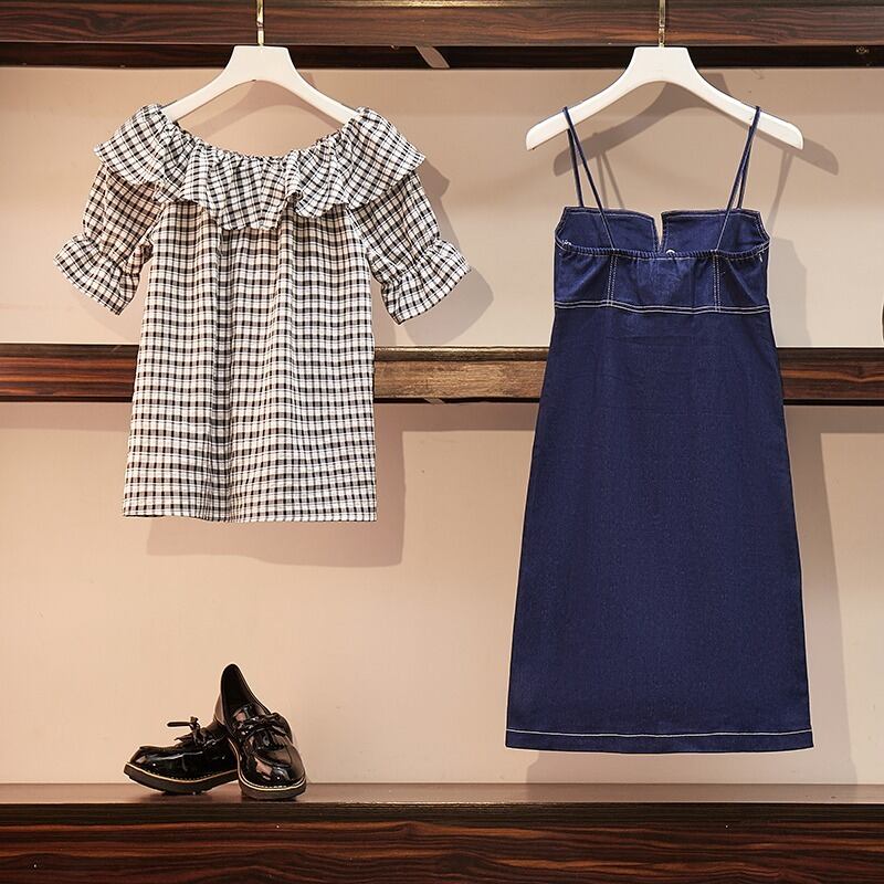 大きいサイズの婦人服 2022 トレンディな女性の夏の新しいファットシスタースリムスリムシャツデニムサスペンダードレスツーピース 大きめサイズ サマー 夏物 888418844930658