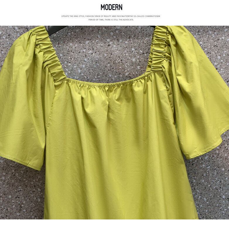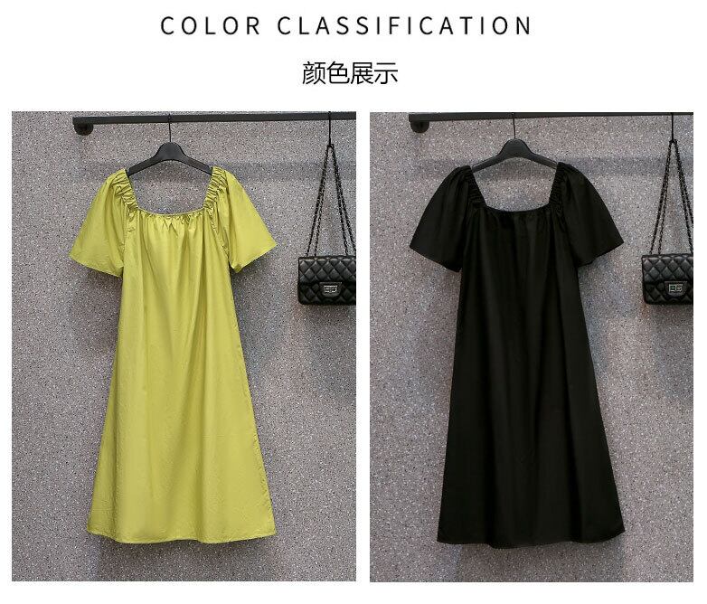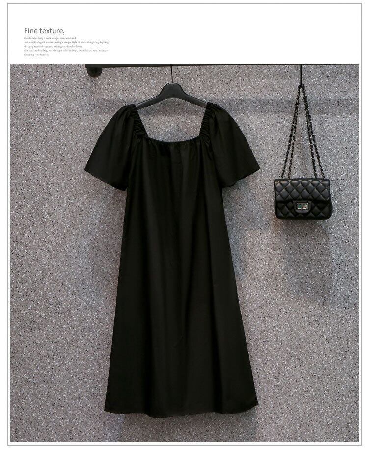 大きいサイズの婦人服 2022 ファットシスター夏の新しい緩いファッション年齢を減らすスリムなロングスカートの気質スクエアカラーのドレス 大きめサイズ サマー 夏物 スクウェア 8884125734788707