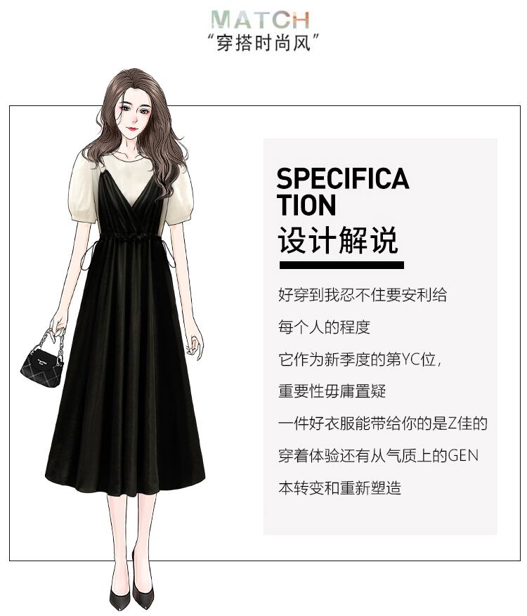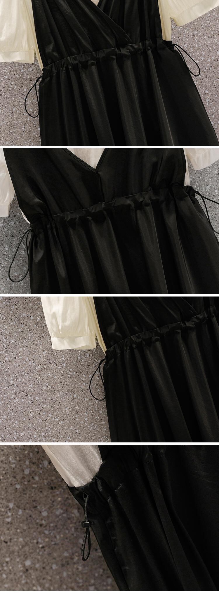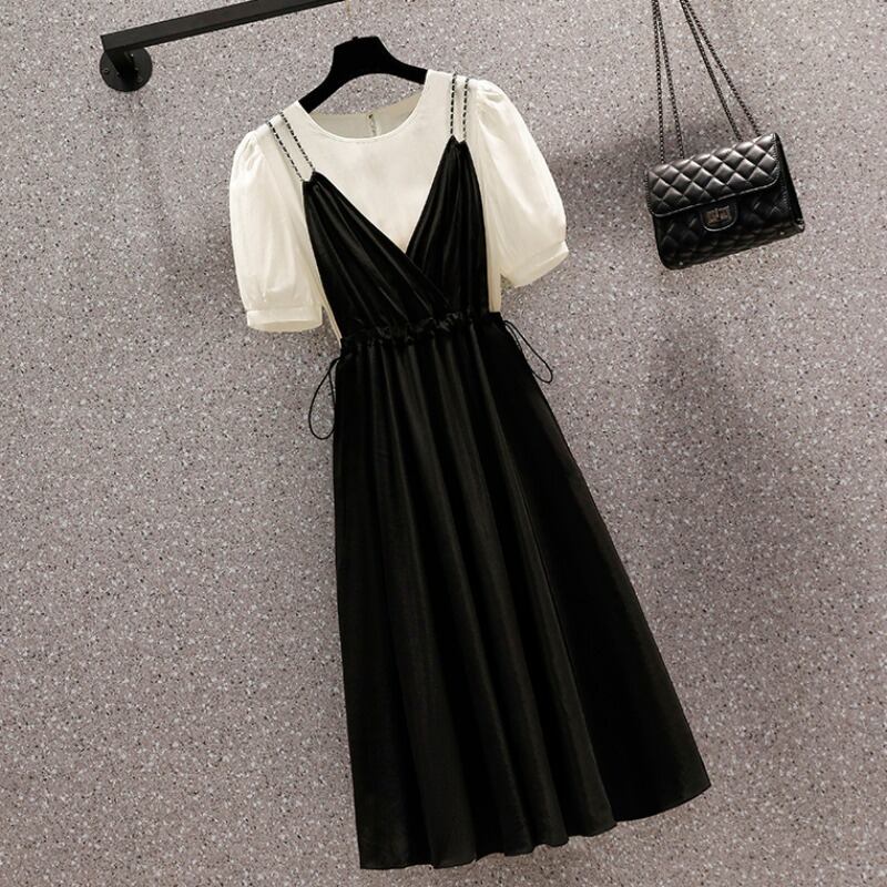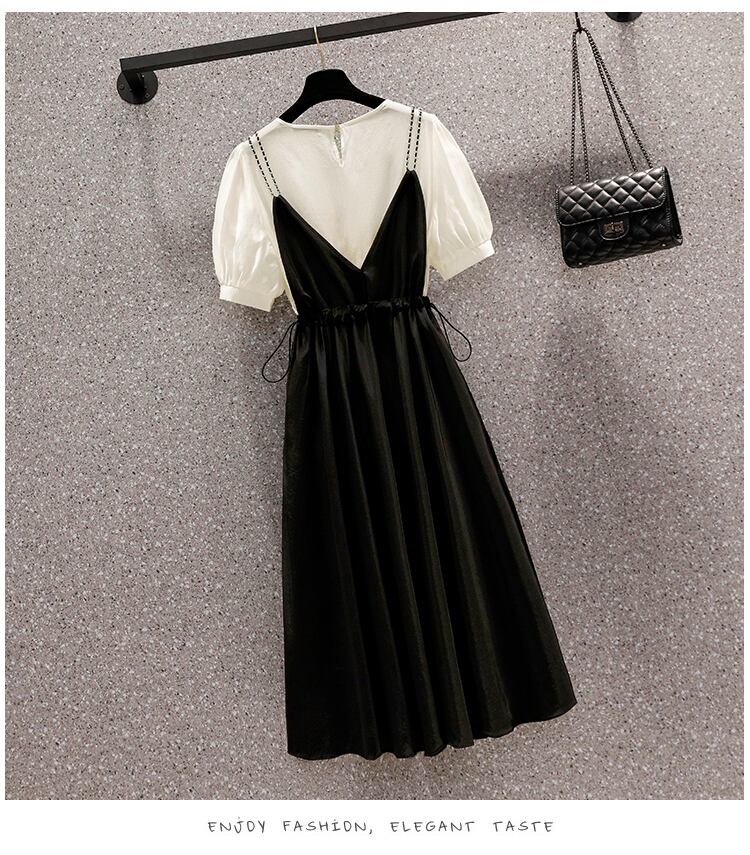 大きいサイズの婦人服 2022 夏の新しいファットシスター気質のファッションデザインセンスステッチフェイクツーピース巾着ドレス 大きめサイズ サマー 夏物 888417865404921