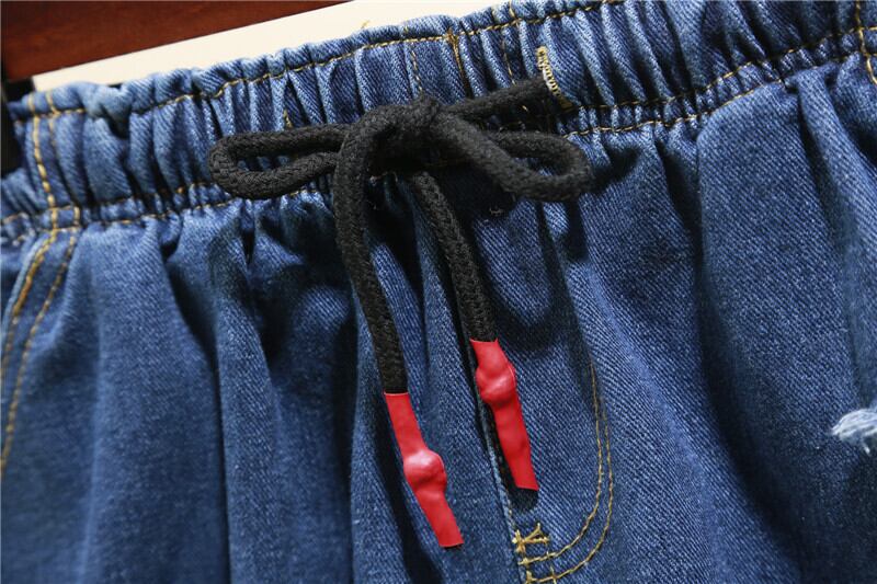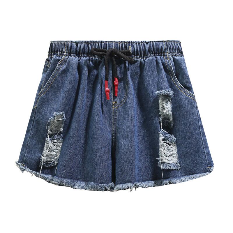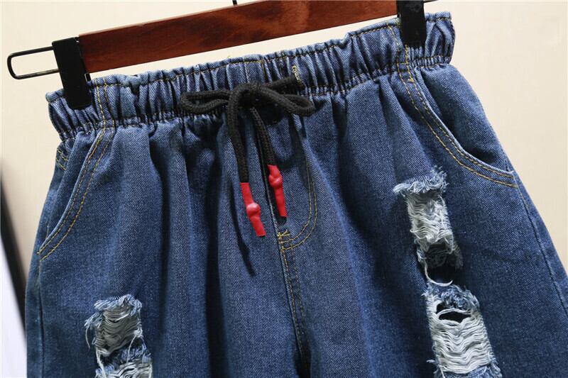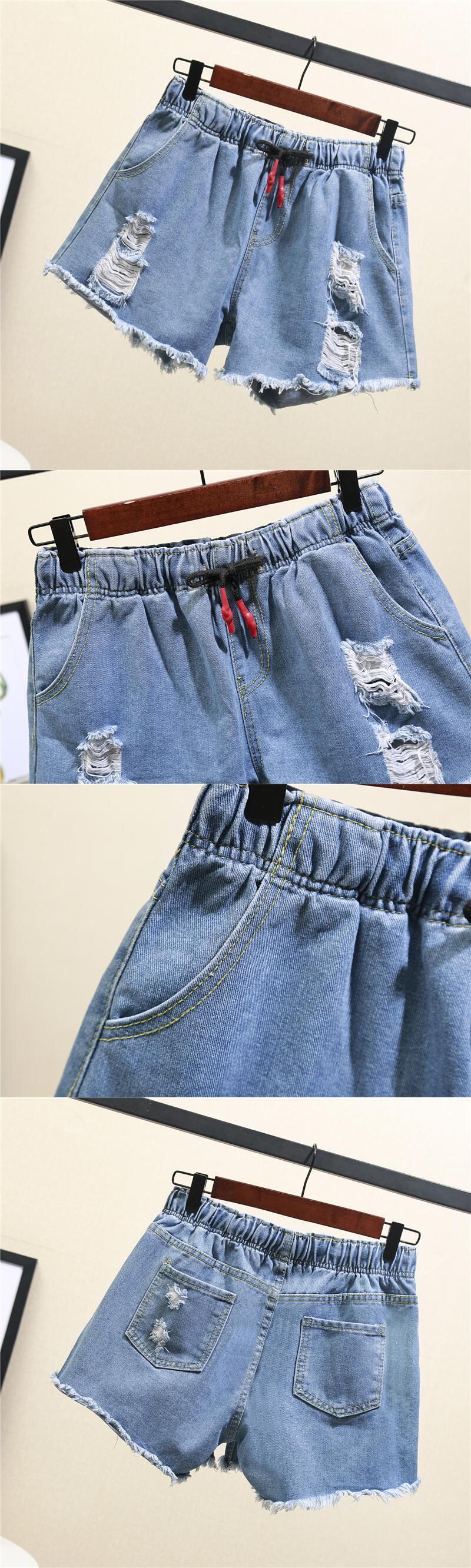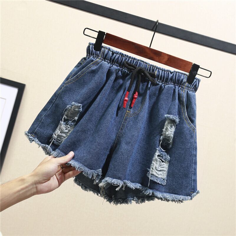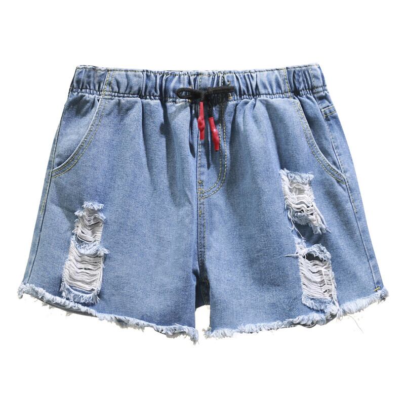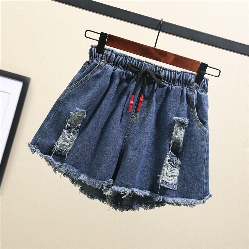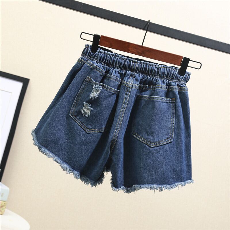 大きいサイズの婦人服 2022 太った姉妹の夏の新しい個性の年齢を減らす薄い伸縮性のある伸縮性のあるウエストほつれたデニムのショート パンツ エラスティック 大きめサイズ サマー 夏物 ショーツ ブルマー 8884165931408964