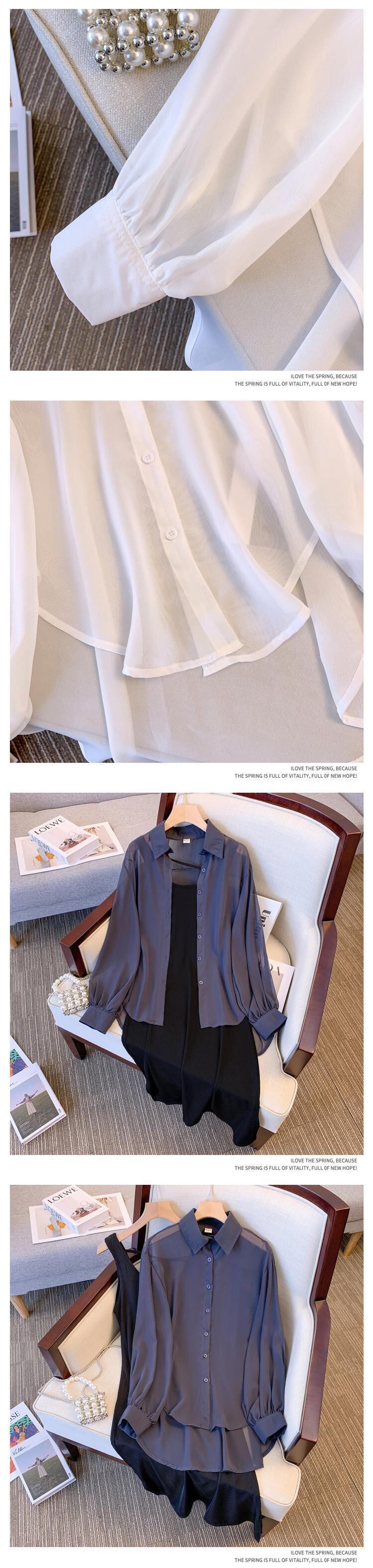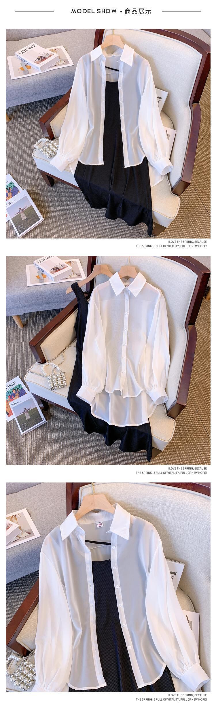 大きいサイズの婦人服 2022 秋の新しいファットシスター無地肉カバーシャツ年齢減少ストラップドレスツーピーススーツ 大きめサイズ オータム 秋物 ソリッドカラー 8884145678267441