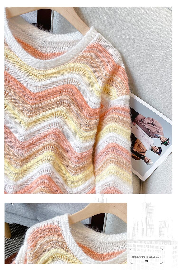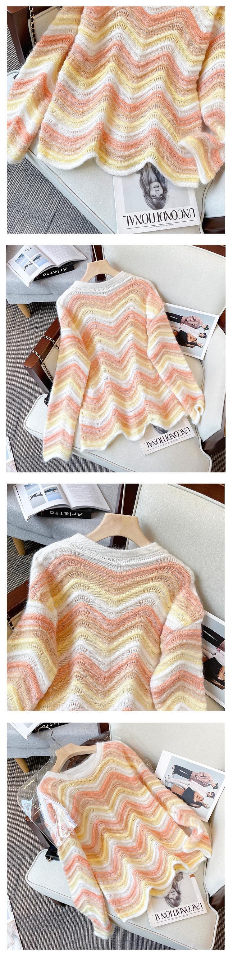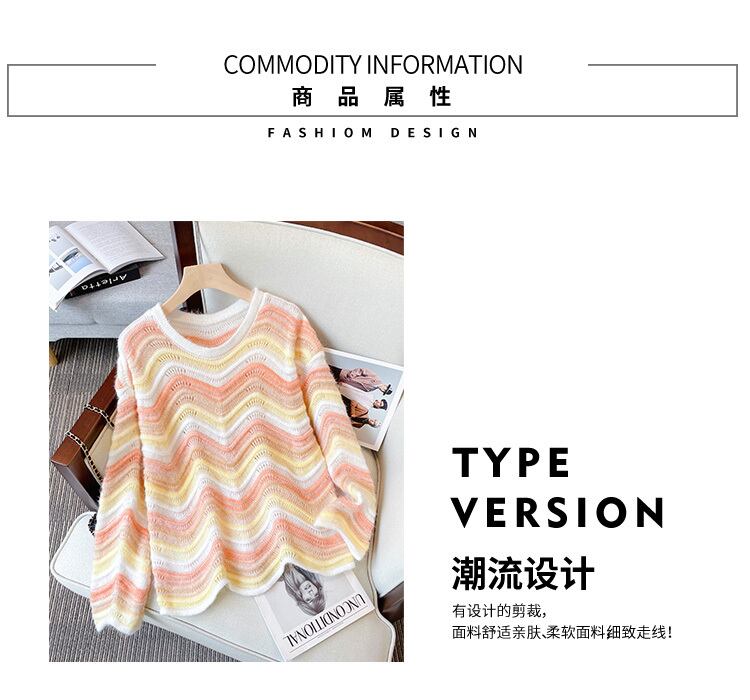 大きいサイズの婦人服 2022 秋の新しいファットシスターファッションルーズストライプデザイン中空肉ニットセーター 大きめサイズ オータム 秋物 8884191480259163