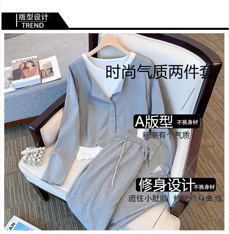 大きいサイズの婦人服 2022 ファットシスター秋の新しいスタイルの薄いワイドレッグカジュアルパンツ不規則なトップツーピーススーツ 大きめサイズ オータム 秋物 888417488781279